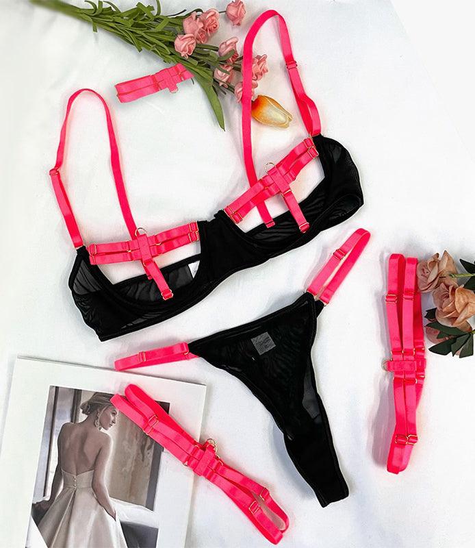 Das 4-Piece Exotic Playsuit-Set ist inspiriert von der pulsierenden Clubszene Berlins und bringt Ihre Persönlichkeit mutig zum Ausdruck. Die Kombination aus weichen Polyester-Mischungen und kunstvollen Aussparungen sorgt für einen aufregenden Look mit einem Hauch von Geheimnis.