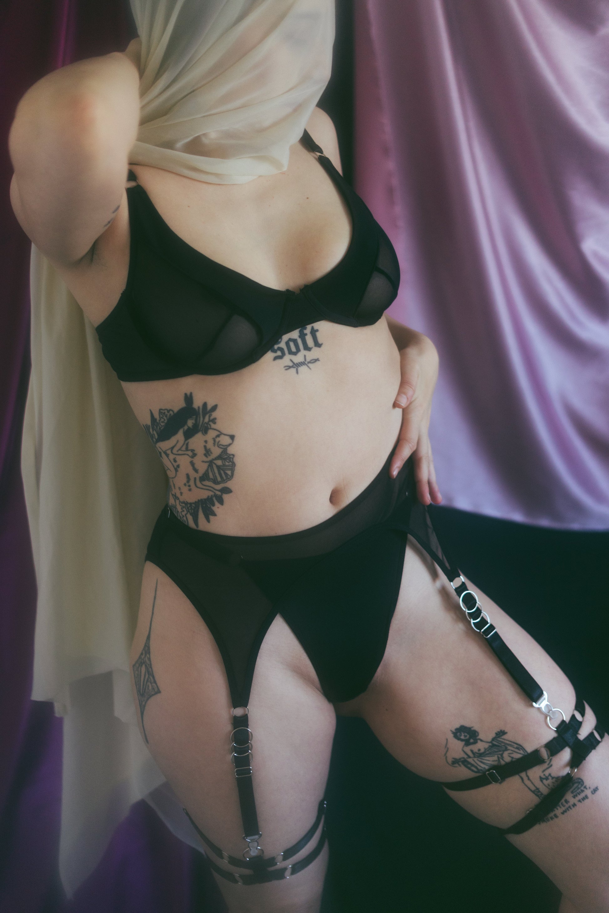 Erleben Sie Stil und Komfort mit unserem 5-teiligen Patchwork-Playsuit. Angefertigt aus hochwertigem Polyester und Spandex, bietet dieses Ensemble optimale Flexibilität und Tragekomfort. Die verstellbaren Träger und der elegante Rückenschluss sorgen für eine perfekte Passform, während das einfarbige Muster und die halben Cups (1/2 Cup) einen subtilen, verführerischen Look garantieren. Dieses vielseitige Stück, perfekt für aufregende Nächte und besondere Anlässe, bringt die Essenz des Berliner Kinky-Chics zum Ausdruck.