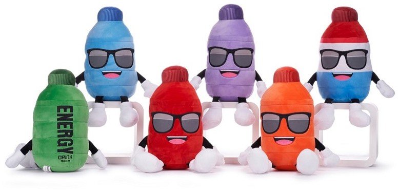 6er Set Energy Drink Plüsch 6-fach sortiert 36 cm