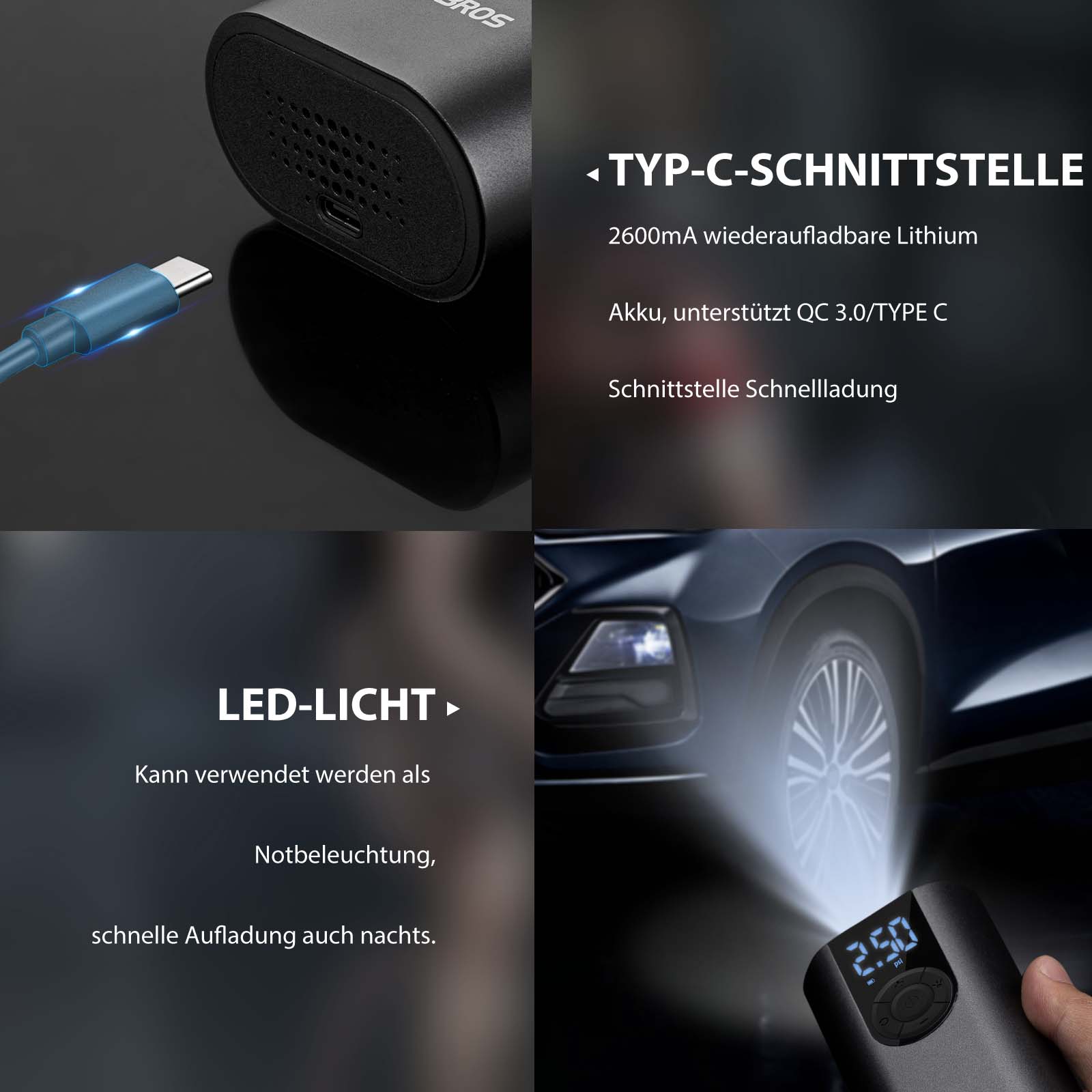- Portable and practical: The electric tire pump has a large LCD screen with a digital display for greater clarity and brightness. It also charges your mobile phone.