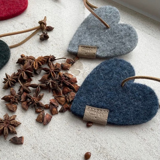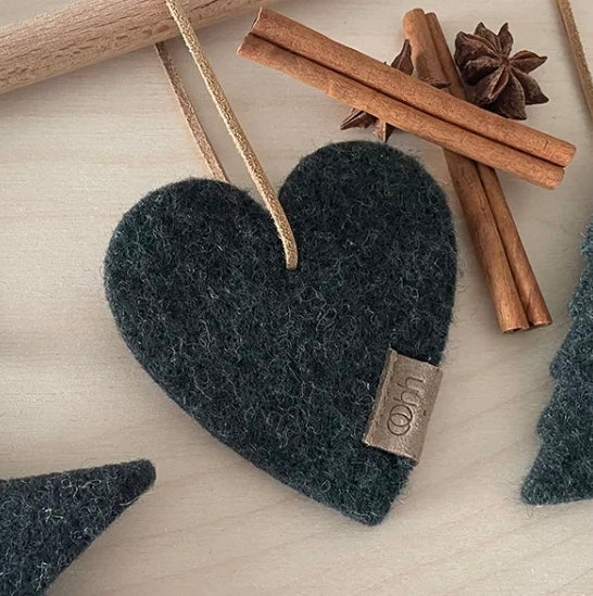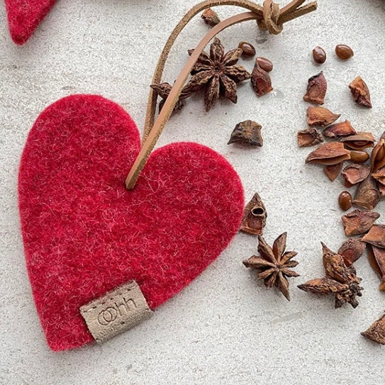 Handgefertigter, aus Wollresten hergestellter Herzanhänger aus der Oohh Kollektion von Luebech Living Aalborg.