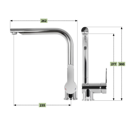 - Drehbarer Auslauf: 360° drehbarer Auslauf bietet zusätzliche Flexibilität und ist für alle gängigen Standard-Spülen geeignet (nicht für den Anschluss an einen Boiler).