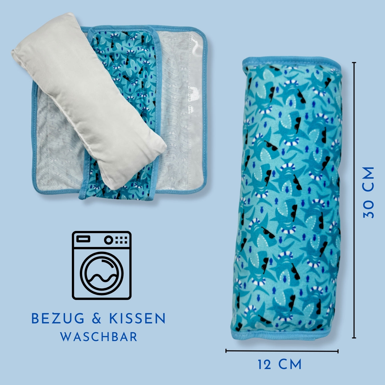 🦈DAS GURTKISSEN MIT EINEM COOLEN HAI MOTIV: Das HECKBO Gurtpolster im originellen Haidesign verwandelt jede Autofahrt in ein komfortables Abenteuer. Durch die ergonomische Nackenstütze können Kinder sicher und entspannt schlafen, während der Kopf stabil und gesund positioniert wird.