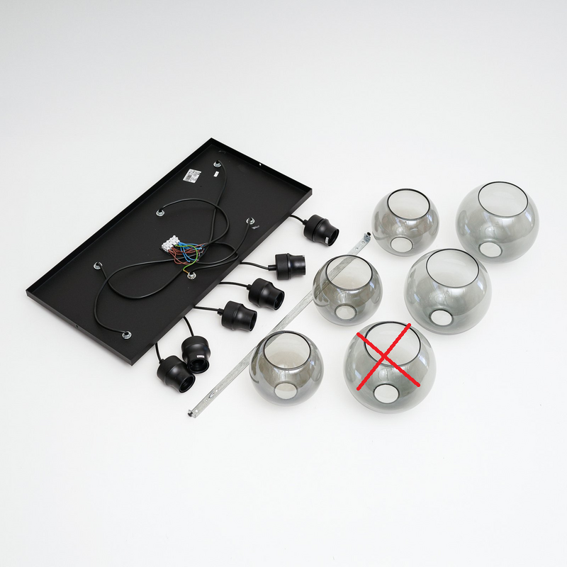 B-grade Euluna Cubus pendant light, six-light fixture. See text/photo.