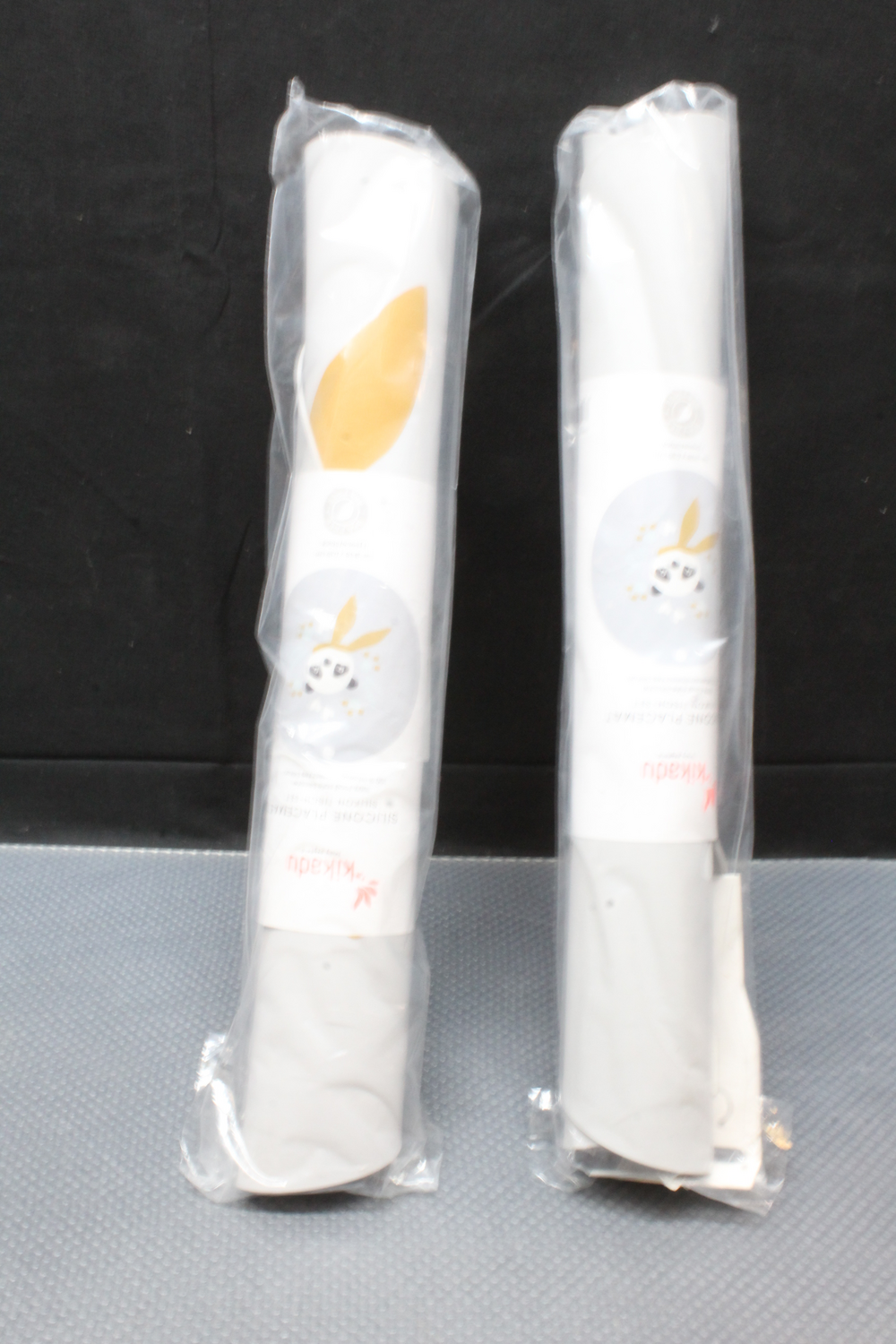B-grade Kikadu silicone placemat, panda design, silver-grey, baby accessory, 2 pieces