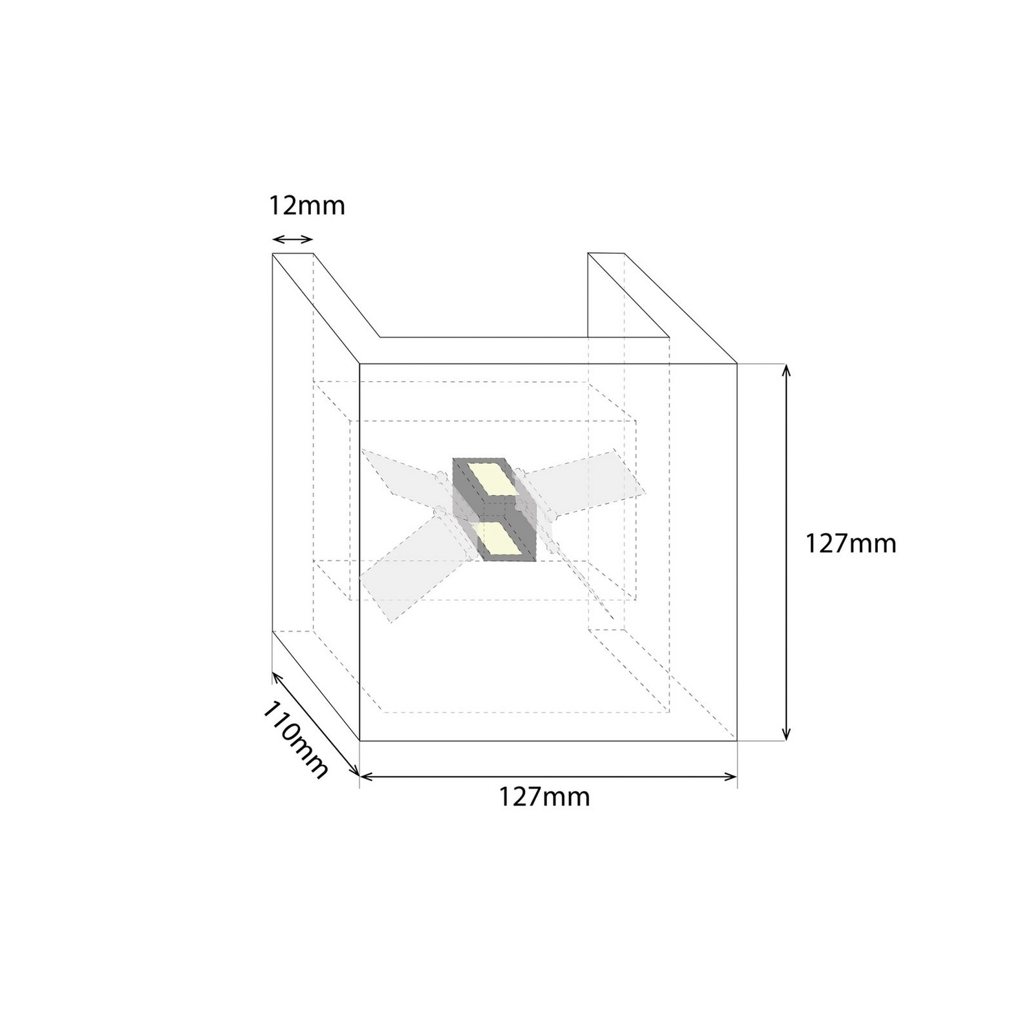 Up- & Downlight: Cubus LED outdoor wall light with adjustable light outlets, IP65 The exceptionally flexible Cubus LED outdoor wall light is the perfect lighting solution for stairwells, hallways, entrance areas, and any other walls where a cozy glow is desired. Two 6-watt LED modules (shining both upwards and downwards) provide more than enough light and ideal facade illumination. This makes it easy to illuminate even the roof structure right up to the ceiling. The light fixture features adjustable light flaps that can be opened or closed upwards and downwards. This allows the width and angle of the two light cones to be adjusted as desired. The Cubus model is also dustproof and protected against water jets, making it suitable for outdoor use on facades. The shade of this elegant outdoor wall light is replaceable.