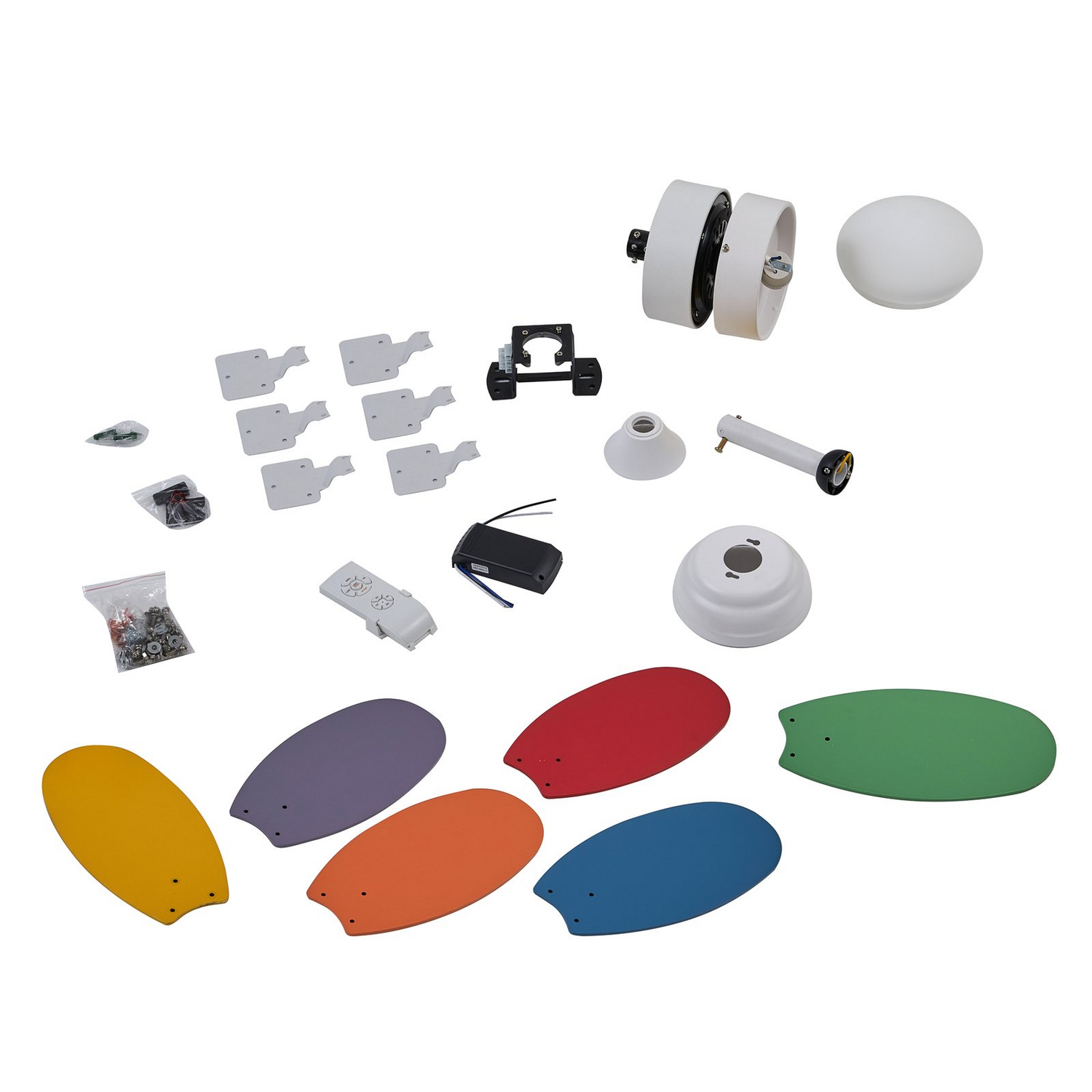 This colorful Litur ceiling fan features six plywood blades, each in a different vibrant color. The included remote control allows you to adjust the speed and set a timer. For added illumination, an E27 light bulb can be installed in the fan.