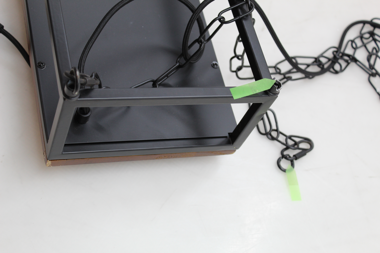 - Color & Material: Black, dark pine