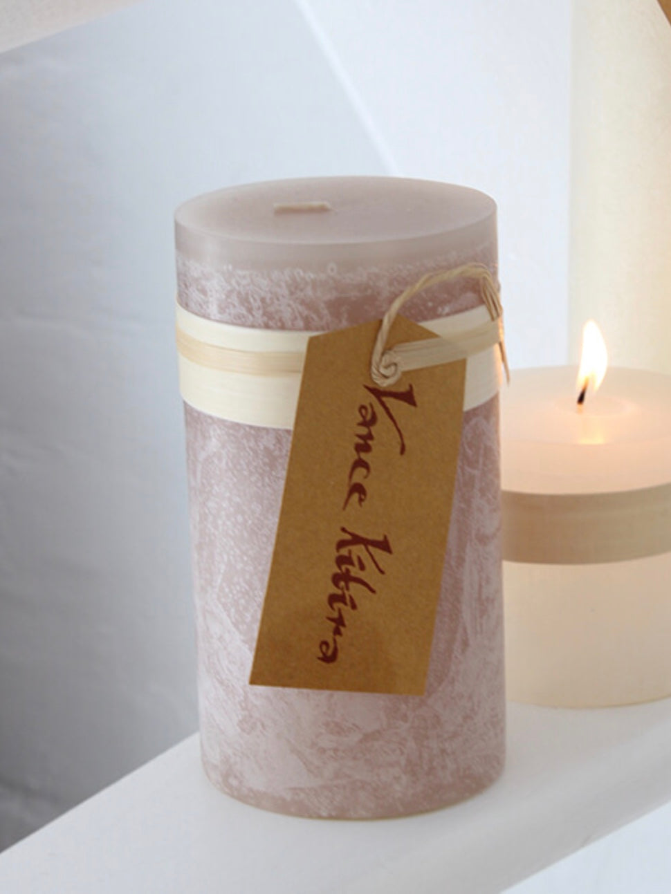 Dekorative, handgefertigte Kerze in rustikaler Optik aus ausgewählten Rohmaterialien wie Premium Paraffin und mit Baumwolldocht. Allergikergeeignet.