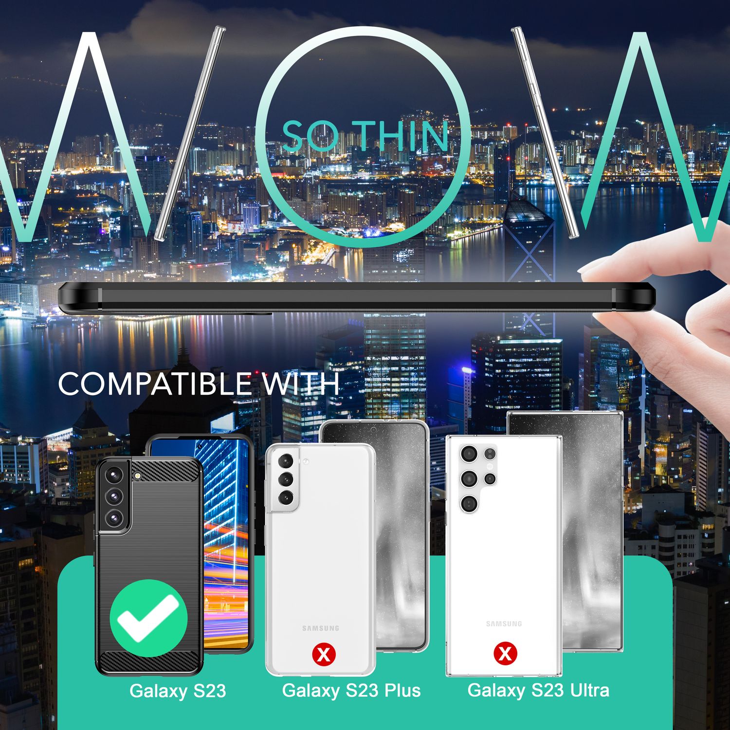 Carbon Look Case for Samsung Galaxy S23, 2x Glass Screen Protectors, Matte Black