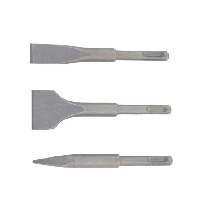 - SDS-Plus-Meißelset in kurzer Ausführung, bestehend aus 3 Teilen