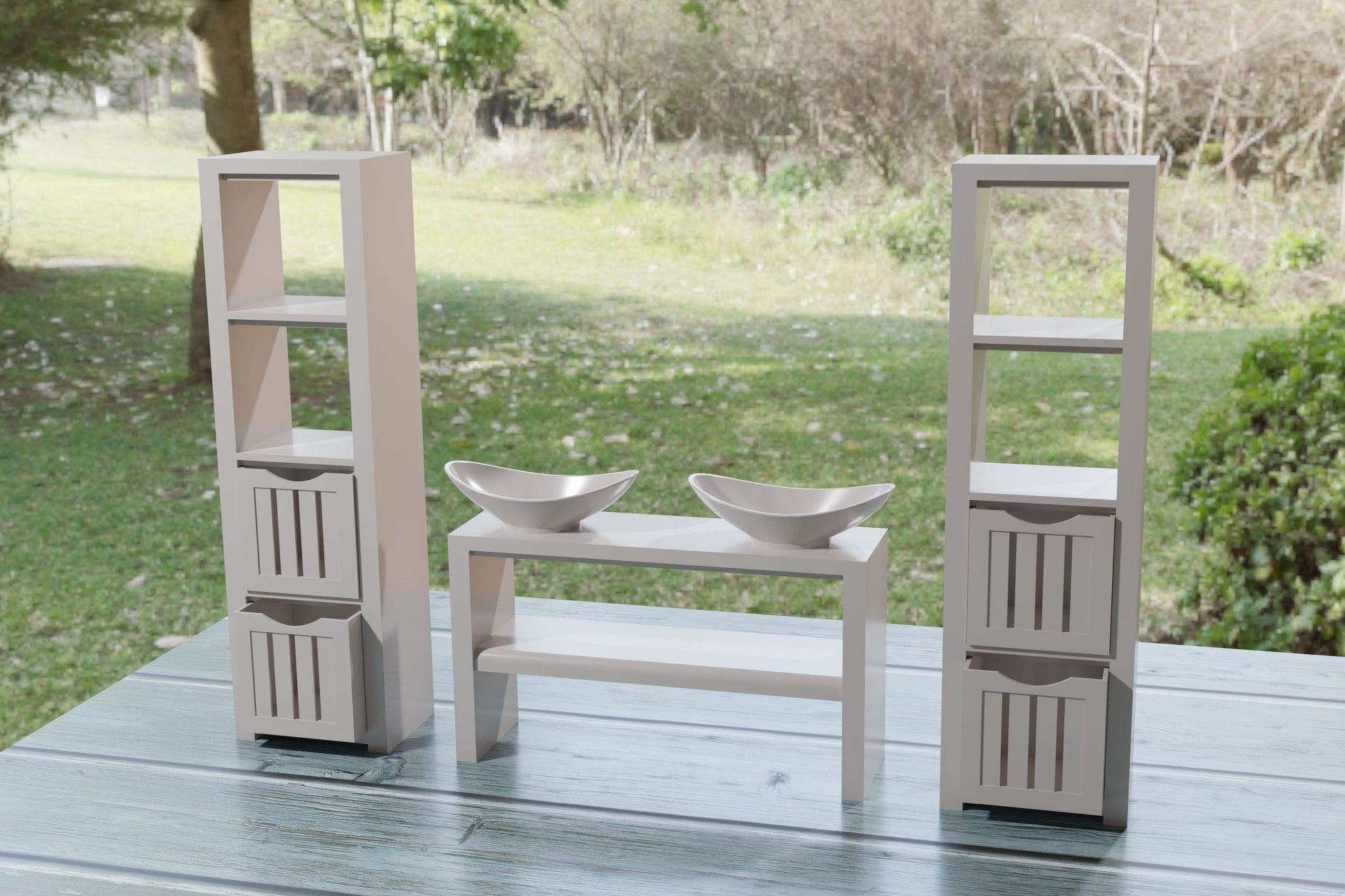 NOTE: Comes without the two oval sinks. Set contains only furniture and storage boxes.