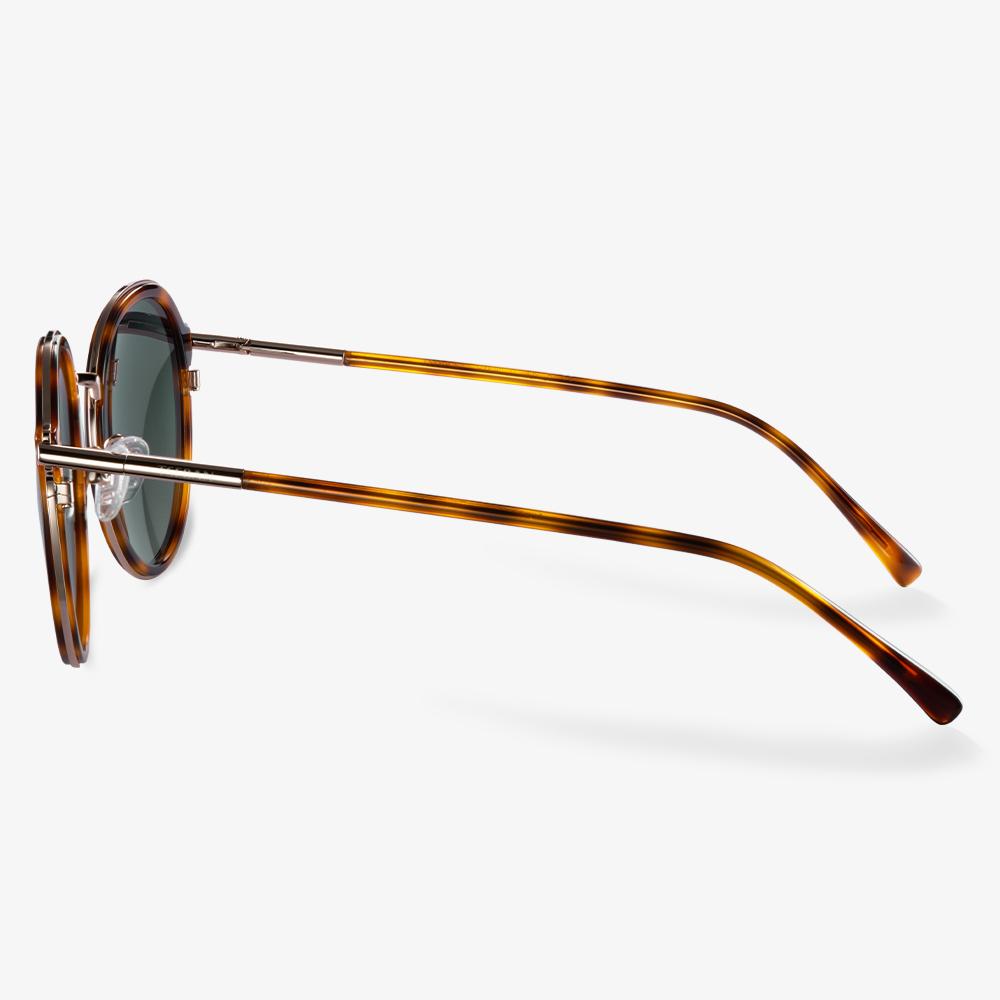 These round vintage sunglasses update your daily outfit. The light nose pads make you feel comfortable. The temples have exquisite tactile sensations. The fashionable bright metal is used as the ornament, adding a few individual elements. Floral frames and mixed materials, the ornament of metallic elements add a sense of color and fashion, mysterious and elegant.