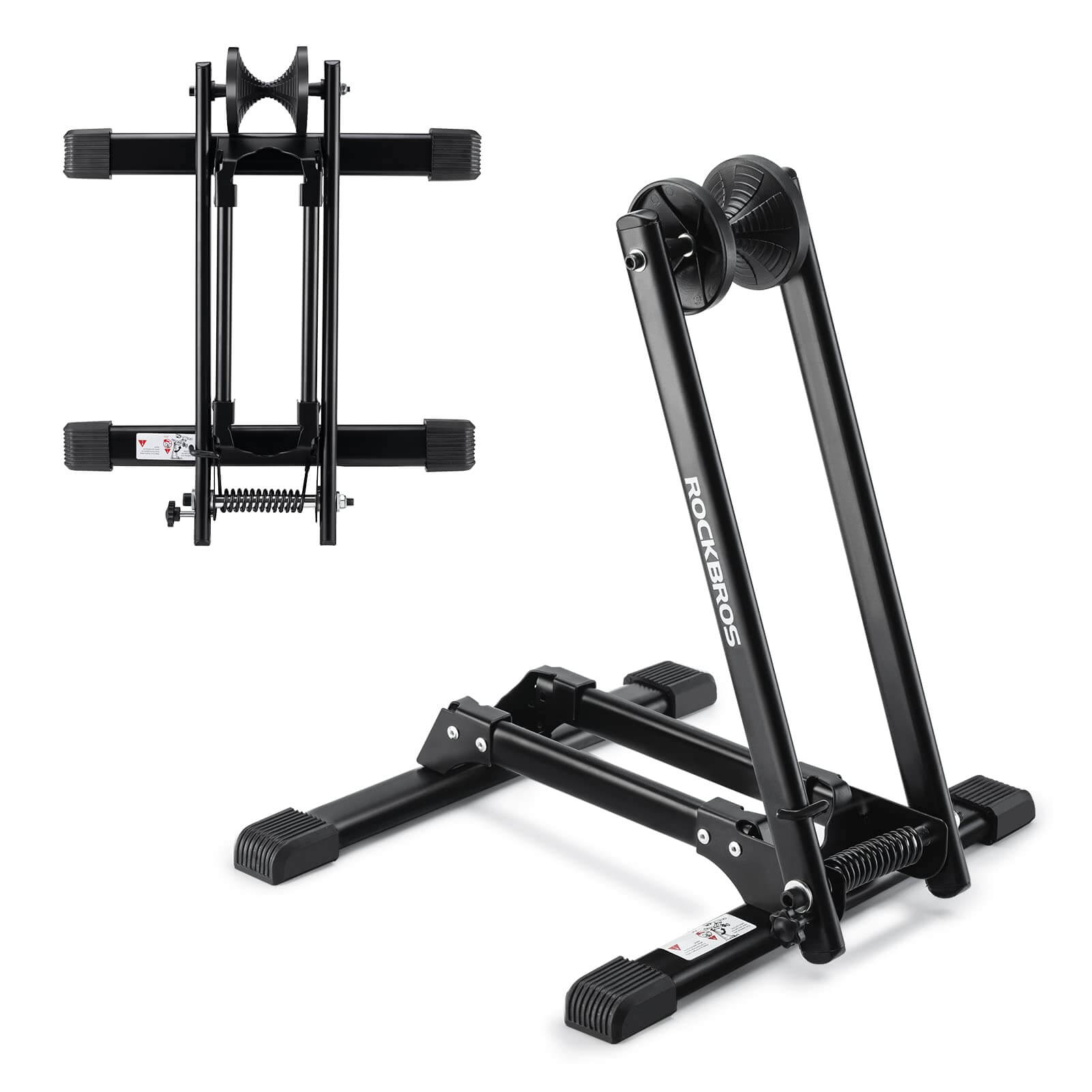 The improved carbon steel bicycle stand is particularly stable, wear-resistant, and durable. Equipped with high-strength springs. The single-pole stand weighs 2 kg, the double-pole stand 2.3 kg.