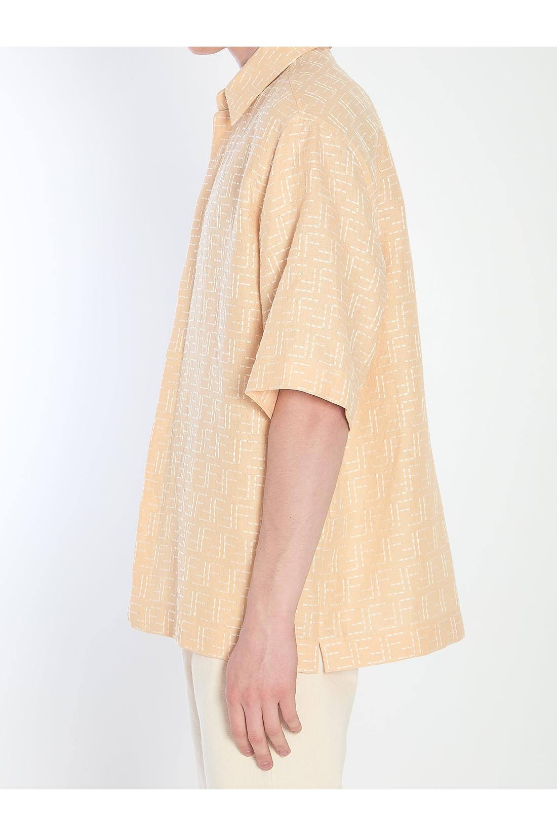 Oversized short-sleeve shirt in light yellow FF Jacquard linen. It features a semi-Italian collar, a concealed front button closure, and a straight hem.