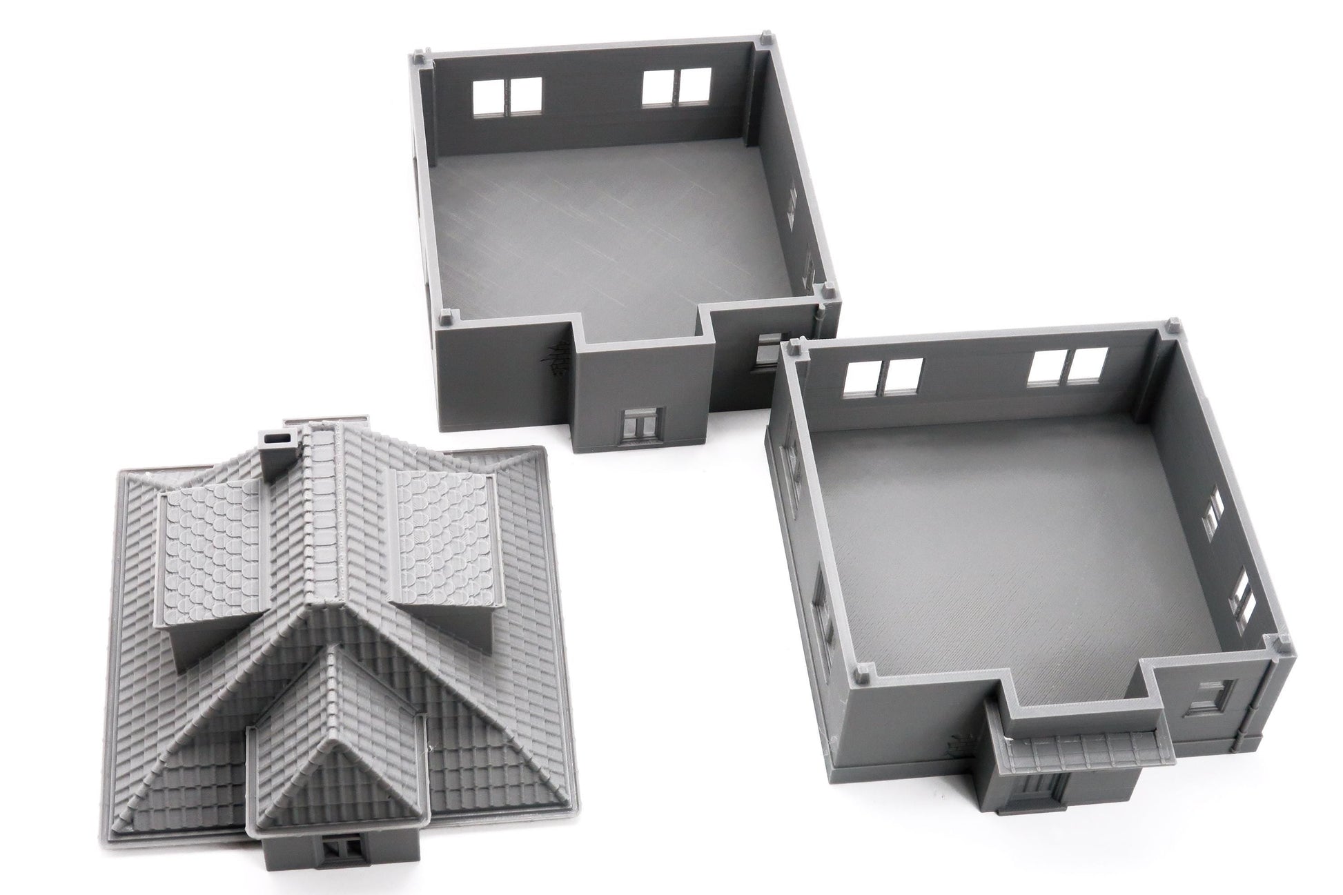 This set includes four different houses (DS T1, DS T2, DS T3, SS T1), each designed to capture the look and feel of typical West German countryside architecture. Together, they allow you to build a full village or scatter them across your board as stand-alone dwellings.