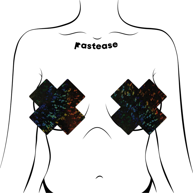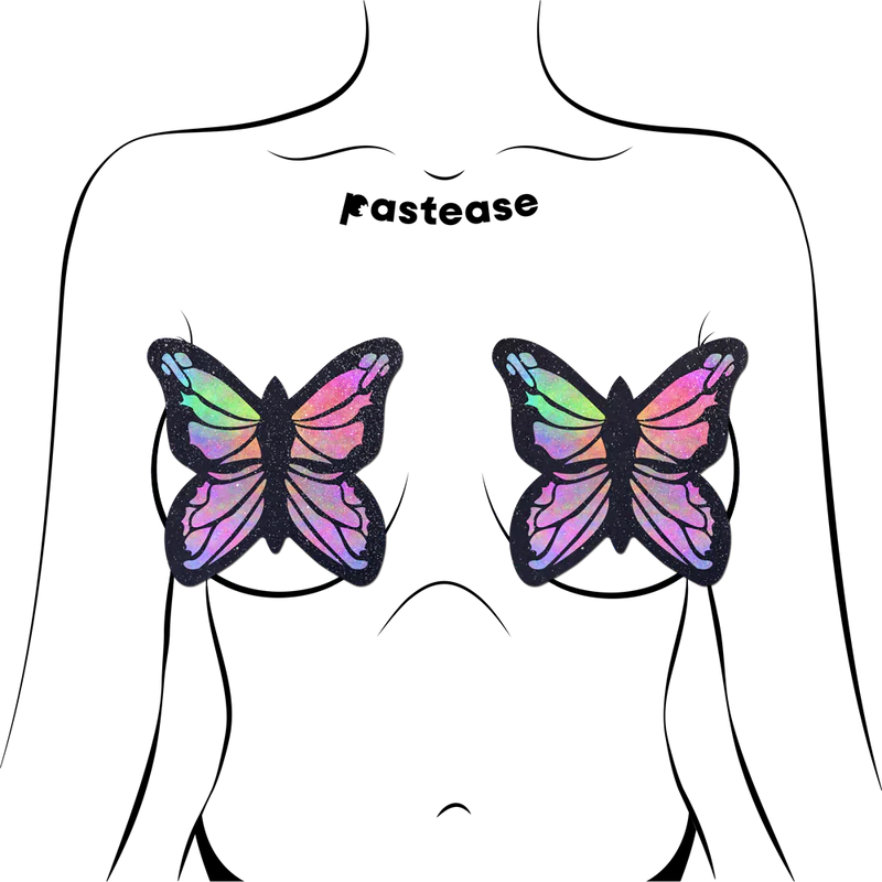 Your next party? Take your outfit to a whole new level with our Full Breast Coverage - a festival must-have creation that provides full breast coverage and a glittery cross glass disco look. A colorful rainbow butterfly decoration and a body sticker complete the design!