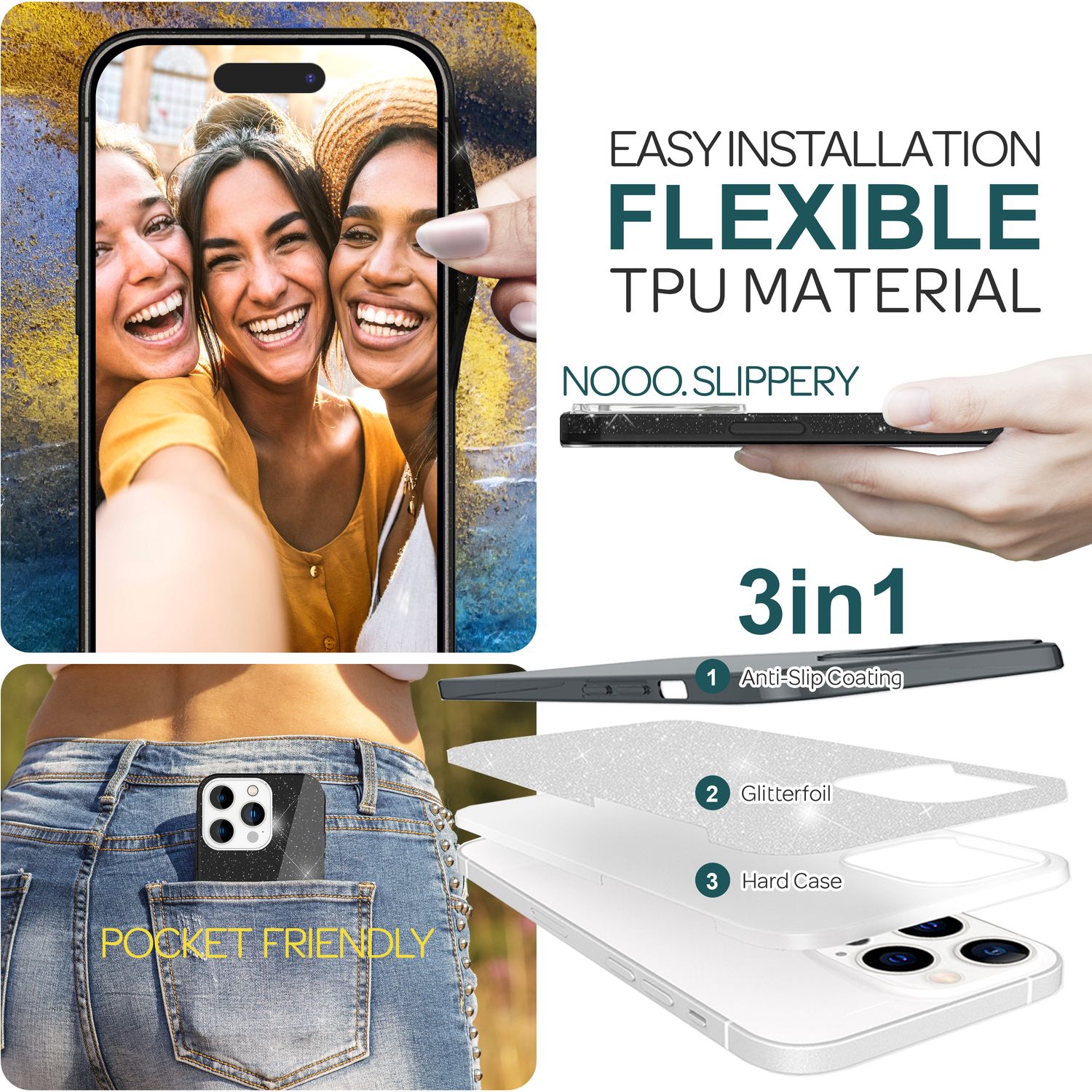 Glitter Case for iPhone 15 Pro Max Hybrid Bling Case Silicone Phone Case Pouch