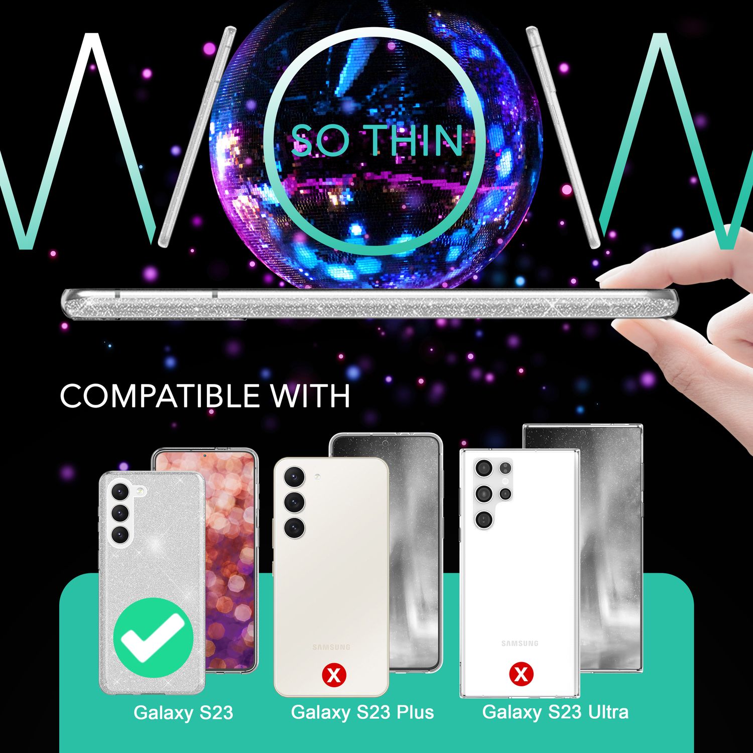 Glitter Hybrid Silicone Case for Samsung Galaxy S23, 2x Screen Protectors