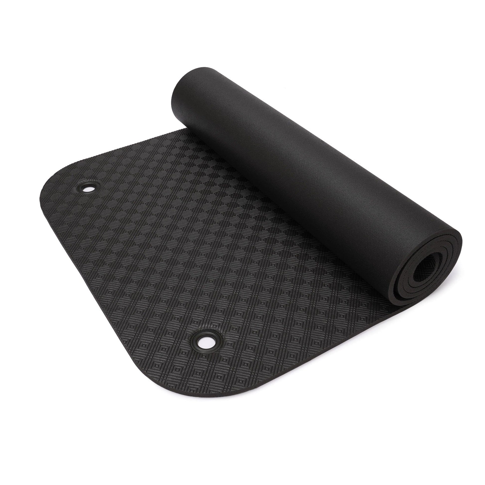Use the Comfort exercise mat for yoga and Pilates, both in the studio and at home. Ideal for intense movements and complex poses, allowing you to focus on your breath and technique. The lightweight mat (2.4 kg) is perfect for travel; take it to your classes or outdoors. Hand wash the mat after use to maintain the quality of the material. The integrated grommets (spaced 45.5 cm apart) offer additional functionality, such as for hanging or securing the mat.