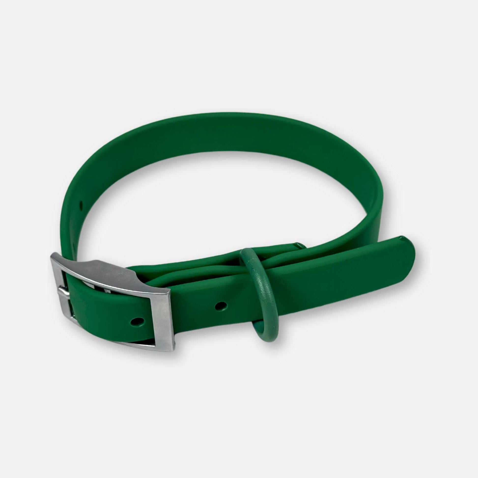 Das Hundehalsband Pura vereint Stil, Komfort und Strapazierfähigkeit. Dank der PVC-Beschichtung ist es wasserabweisend, geruchsneutral und besonders leicht zu reinigen. Die robuste Schnalle aus Zinklegierung und der stabile D-Ring aus beschichtetem Carbonstahl sorgen für zuverlässige Sicherheit bei jedem Spaziergang.