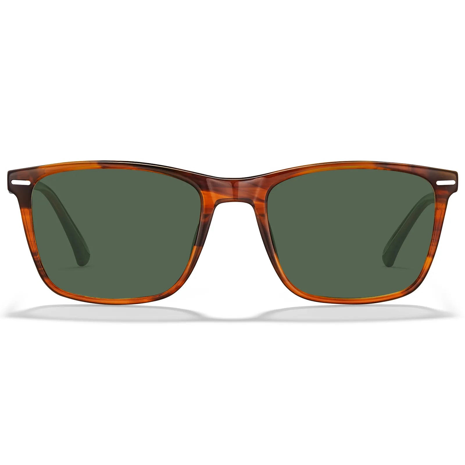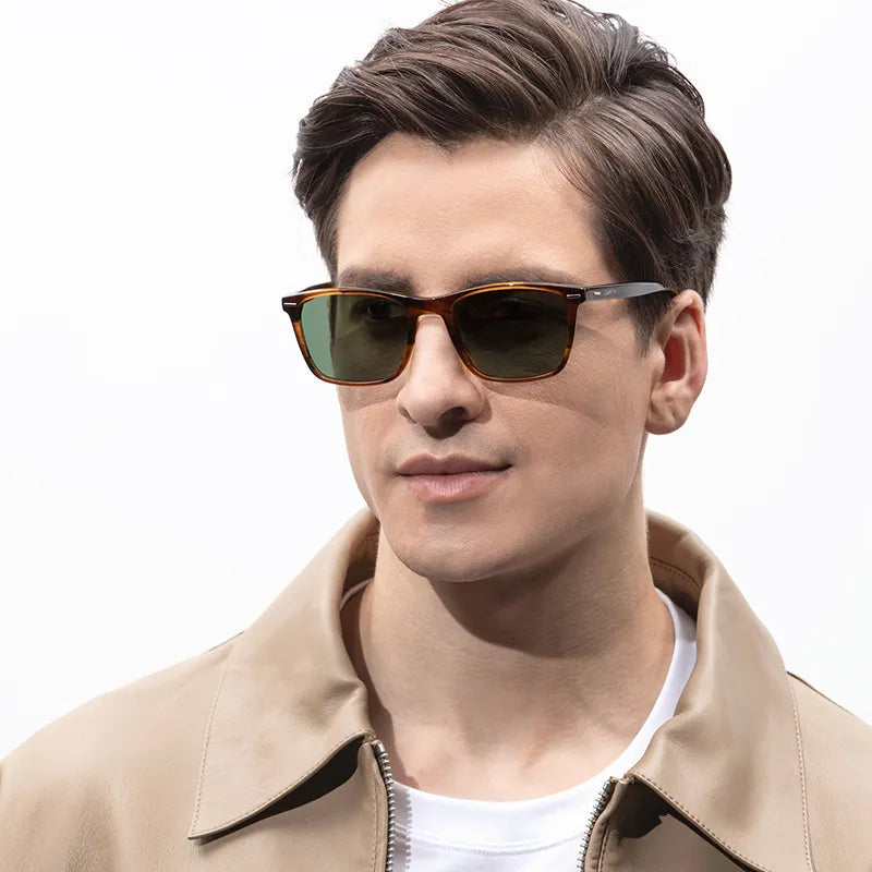 - Acetate Demi Frame Men's Sunglasses - Our sunglasses are made of hand-polished Italian acetate material. In contrast to cheap plastic frames where the color is sprayed on, our glossy frame maintains its color brightness impeccably over time because the hue is inherently embedded in the material. Thus, it resists fading, peeling, yellowing, or other forms of discoloration. The hypoallergenic acetate is also resistant to sweat corrosion, ensuring skin health during outdoor activities.