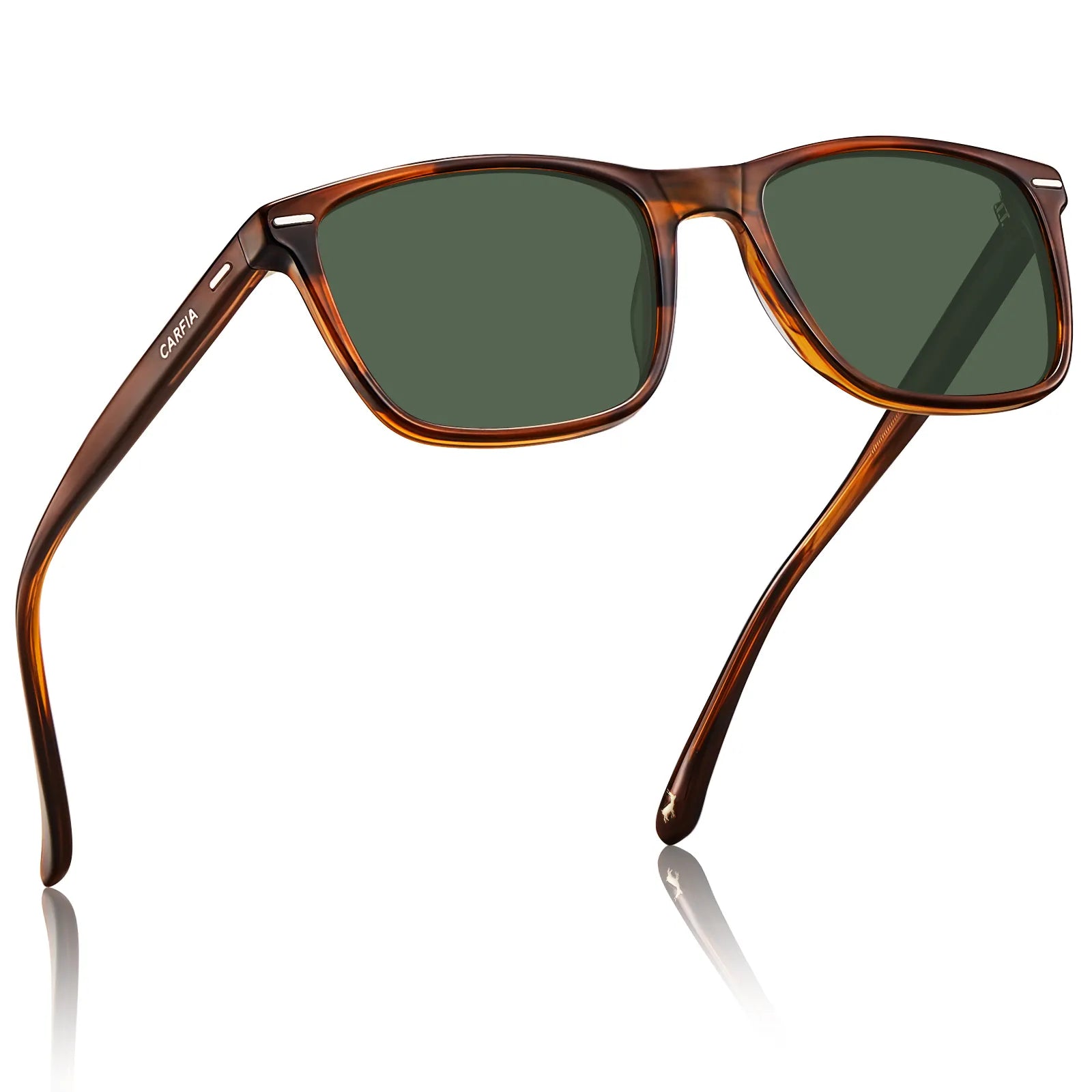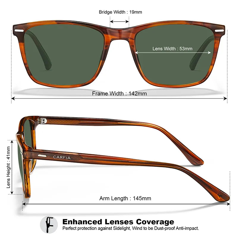 - Men's Sunglasses with Polarized UV Protection - Our men's polarized sunglasses are effective UV filters, blocking 100% of harmful UVA/UVB rays up to 400nm. They protect your eyes from squinting, fatigue, and wrinkles. Compared to traditional TAC lenses, our HD lenses also eliminate 99% of glare without haze and optical distortion. They then provide vibrant, saturated colors, crisp clarity, and unsurpassed details. Truly essential for driving, traveling, sunbathing, or other outdoor activities.
