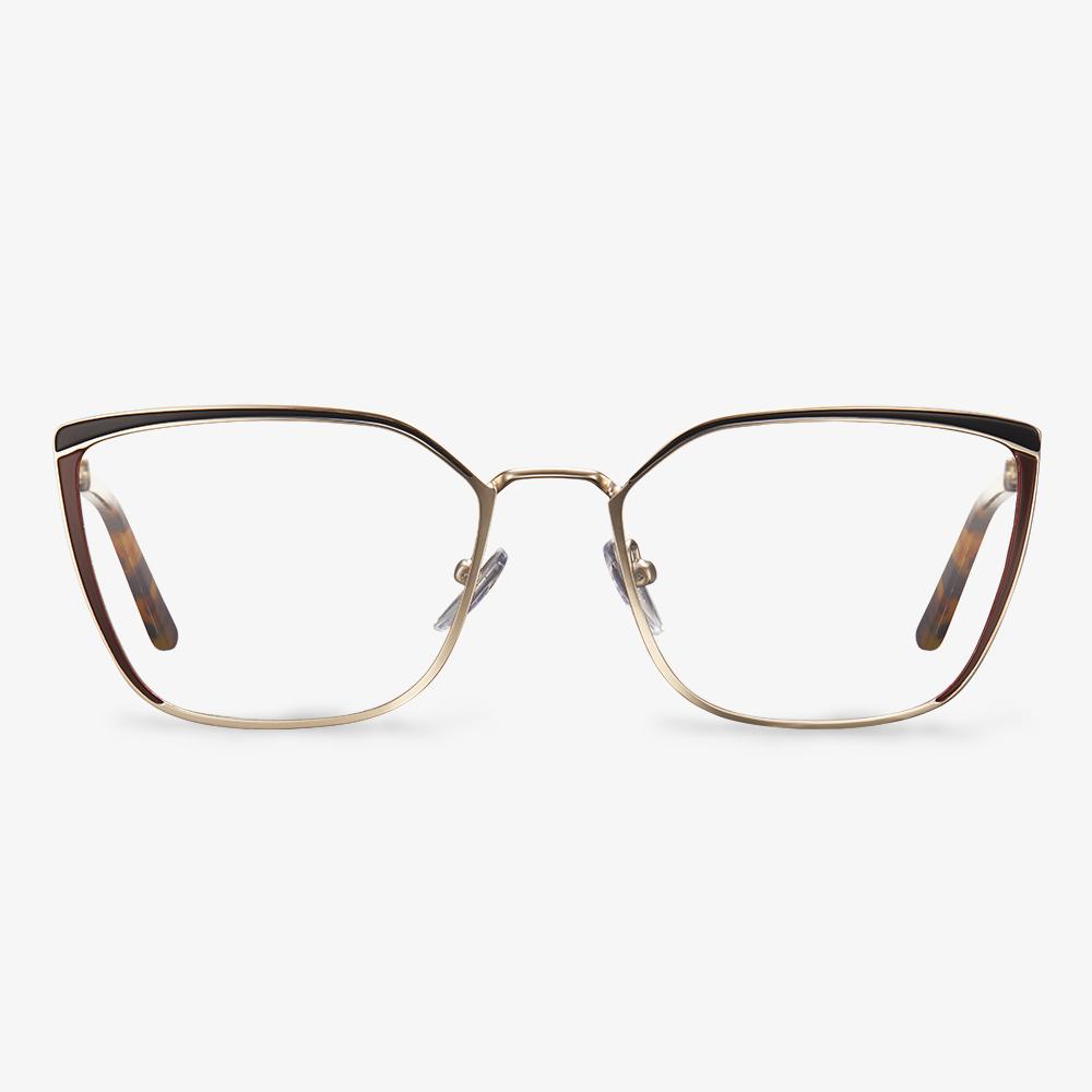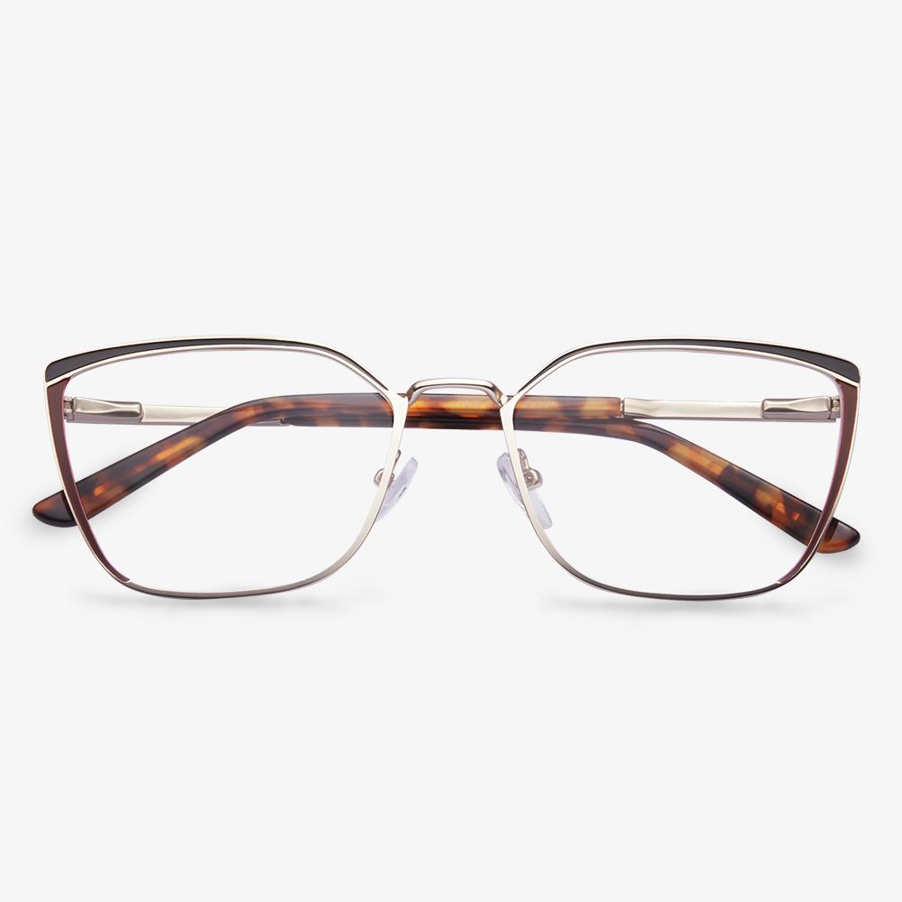 This is a modern frame that combines the characteristic of geometric frames and browline frames. This modern pair of glasses has taken some style cues from the past. It further breaks the boundaries of the browline frame. The bright-colored metal frame is used to surround the geometric lens, which adds a unique charm to the whole shape.