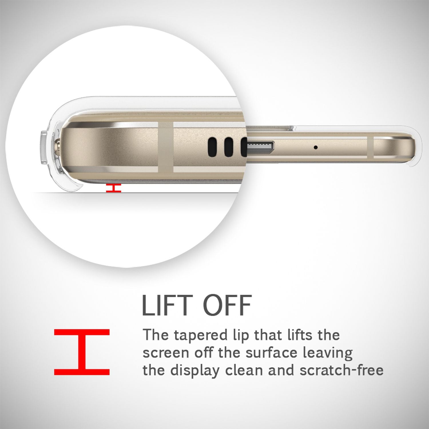 The case's frame extends slightly beyond the display, preventing it from resting directly on surfaces. This keeps your display clean and scratch-free.