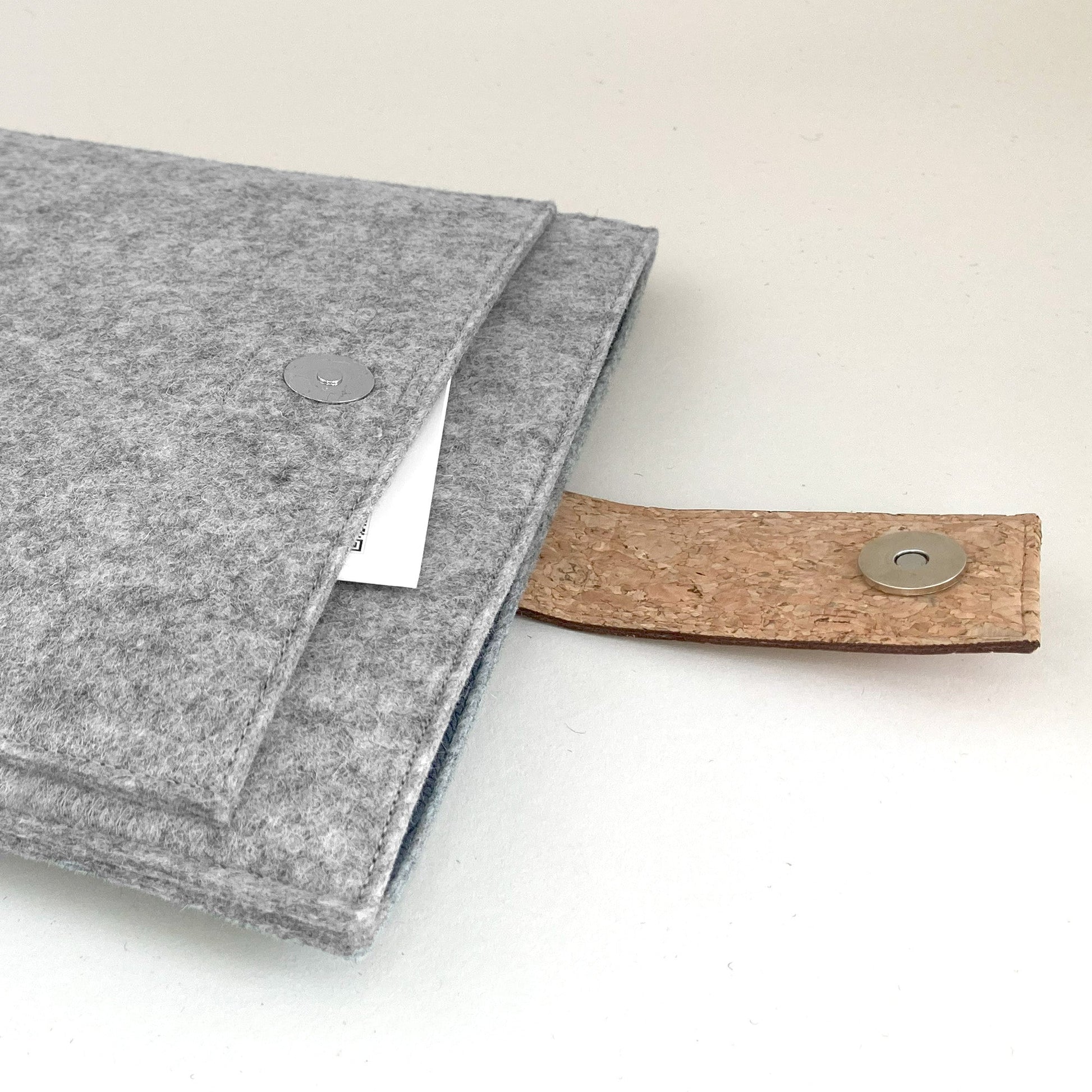 Genieße erstklassigen Schutz und einzigartigen Stil mit unserer neu designten Fujitsu Stylistic Filzhülle. Auf Reisen schützt das maßgeschneiderte Design dein Gerät zuverlässig, verpackt in schlichter Eleganz und exakter Passform. Die besondere Wärme- und Kälteregulierung des Filzes sorgt für ideales Geräteklima. Sorgfältig verarbeitete Nähte und Kanten reflektieren unsere Detailverliebtheit. Für diese Hülle verwenden wir ausschließlich nachhaltige Bio-Materialien von ausgesuchten Schäfern. Hergestellt in Deutschland, in unserer eigenen Werkstatt. Neu ist die innovative Verschlusslasche aus robustem Korkstoff, versehen mit einem flachen, magnetischen Knopf, der Sicherheit und Stil vereint. Das integrierte Zusatzfach an der Vorderseite ist ideal für Notizzettel, Kabel und andere flache Geräte, bietet schnellen Zugriff und hält deine Gegenstände sicher und organisiert.