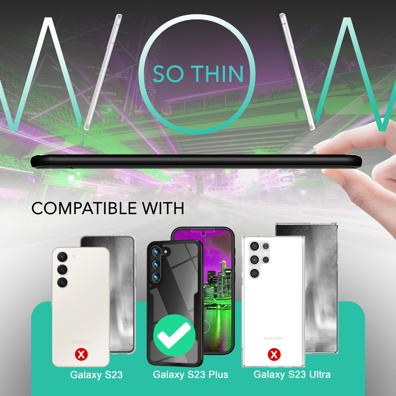 Clear 360-degree hybrid case for Samsung Galaxy S23 Plus, full-body case, black