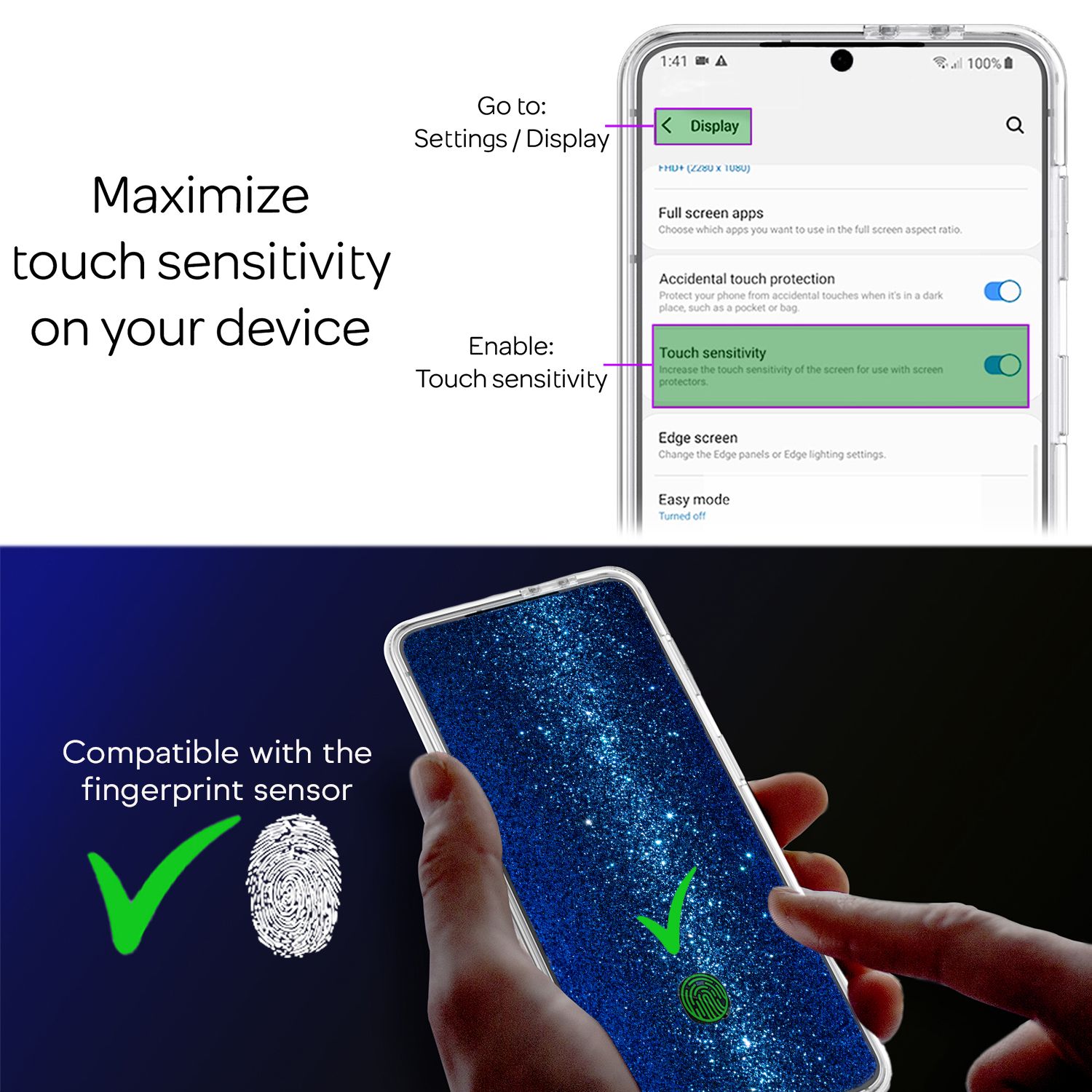 The dual-layer protection system combines a robust back with a hardened front film and a flexible shock-absorbing frame . This ensures your smartphone is perfectly protected without compromising usability.