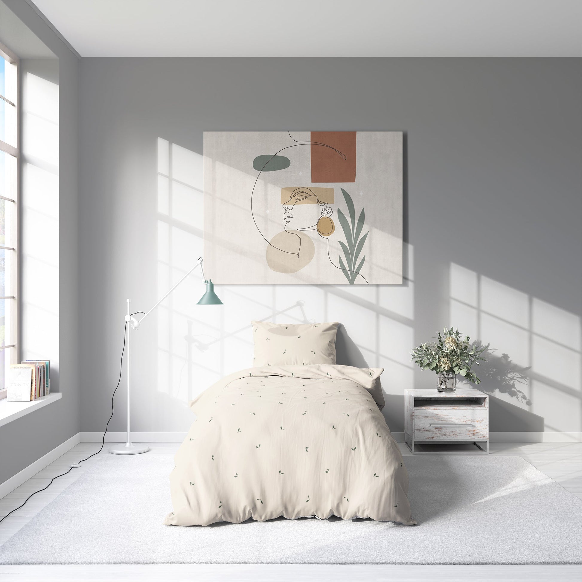 Minimalist elegance: The bedding in the delicate olive leaf design from Leslis captures the essence of an idyllic olive grove with a soft, nature-inspired color palette. This collection celebrates the tranquility and beauty of nature through the interplay of small olive leaves. Made from pure cotton, this bedding brings an atmosphere of serenity and natural elegance to any bedroom.