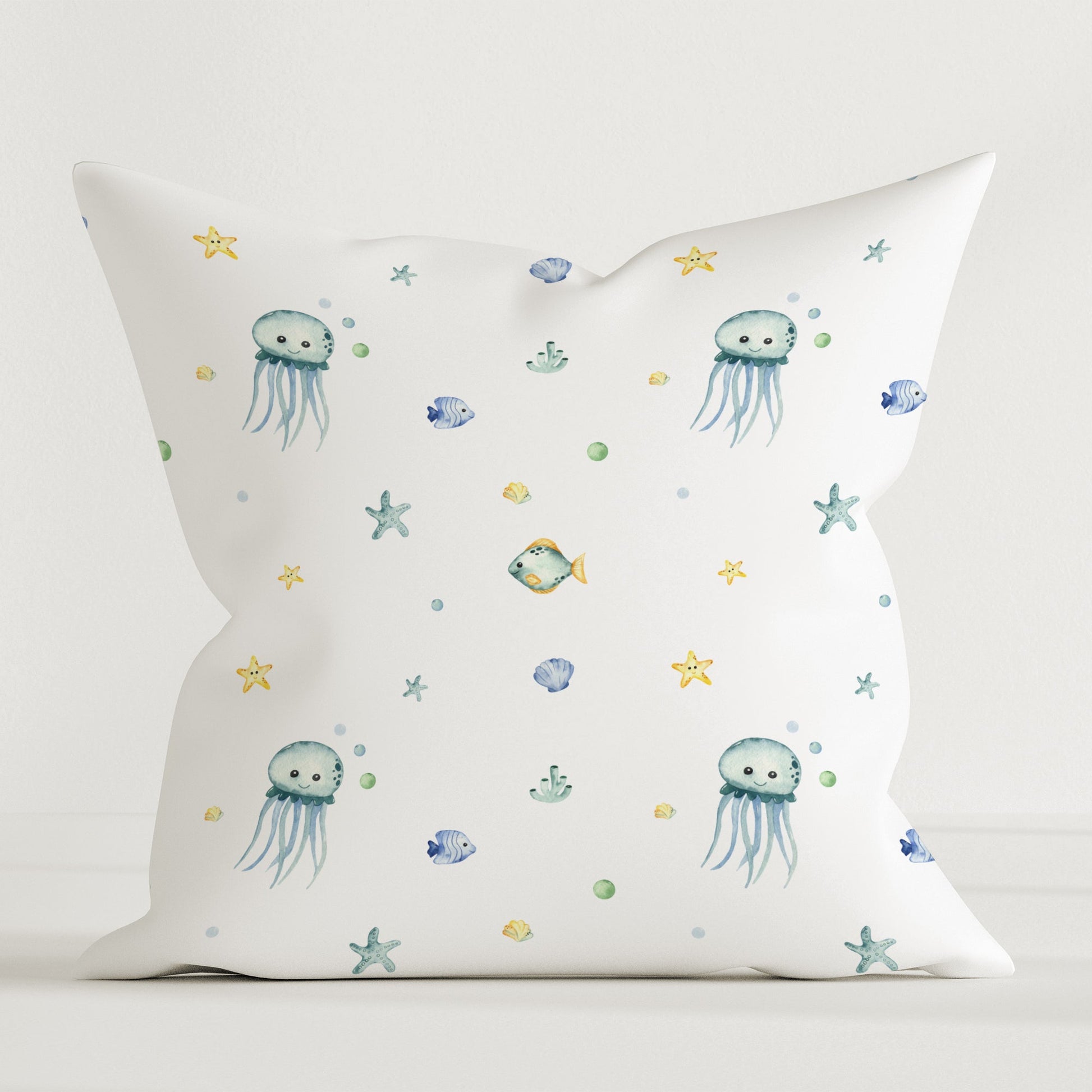Underwater Adventures: The "Little Octopus" decorative cushion is a fascinating companion for exploring the depths of the ocean. With its vibrant, detailed illustration of a friendly little octopus playfully swimming among colorful fish, it brings an atmosphere of curiosity and discovery to any child's room. This charmingly designed cushion cover, made from 100% pure cotton, not only provides comfort but also stimulates the imagination of little adventurers to explore the mysterious underwater world and discover the stories of sea creatures.