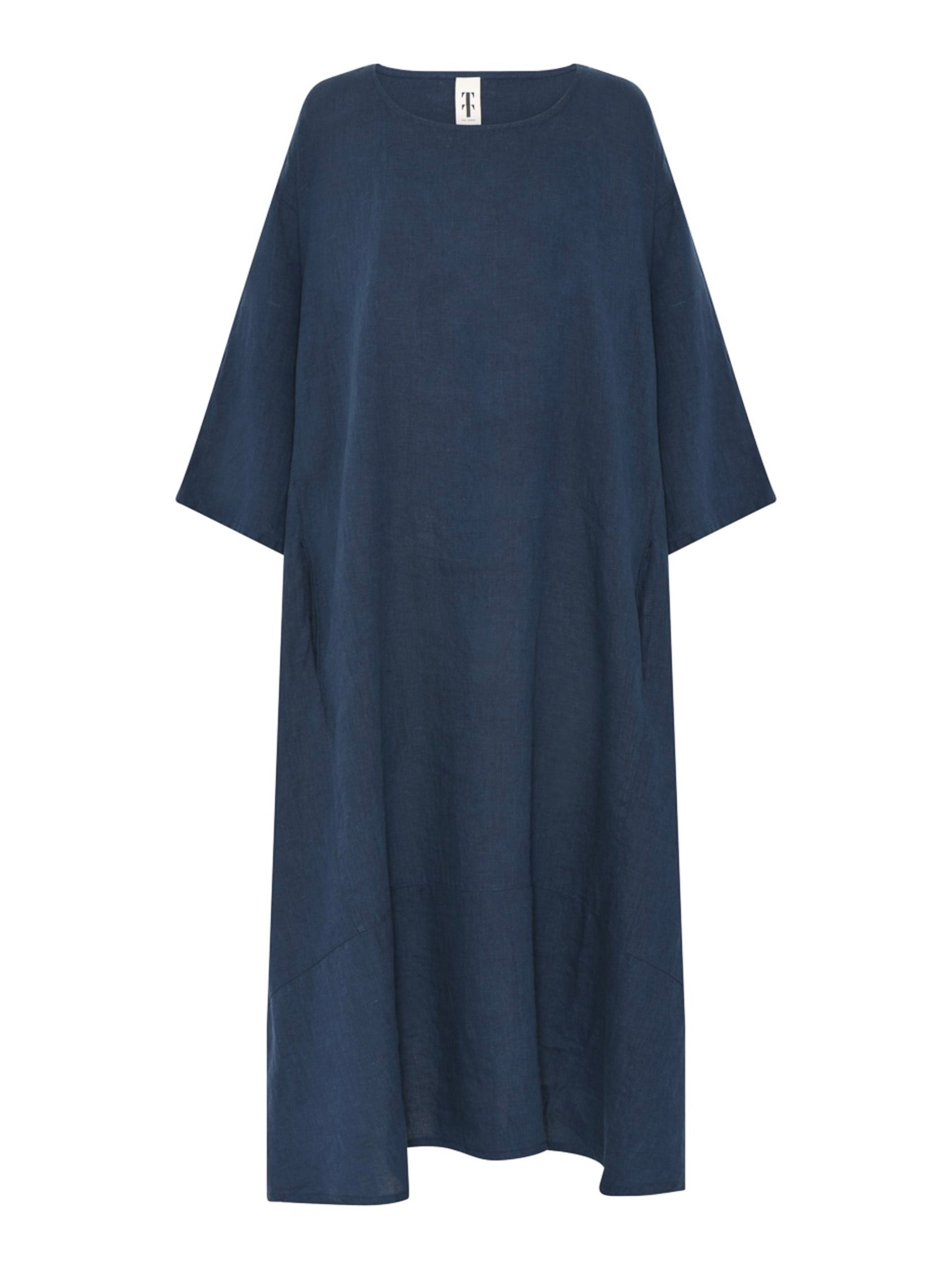 Unique oversized linen dress. Wide round neckline, three-quarter sleeves. Side pockets. Exceptionally high-quality, soft linen, produced without synthetic additives or artificial fertilizers. Runs extremely large; we recommend ordering two sizes smaller.