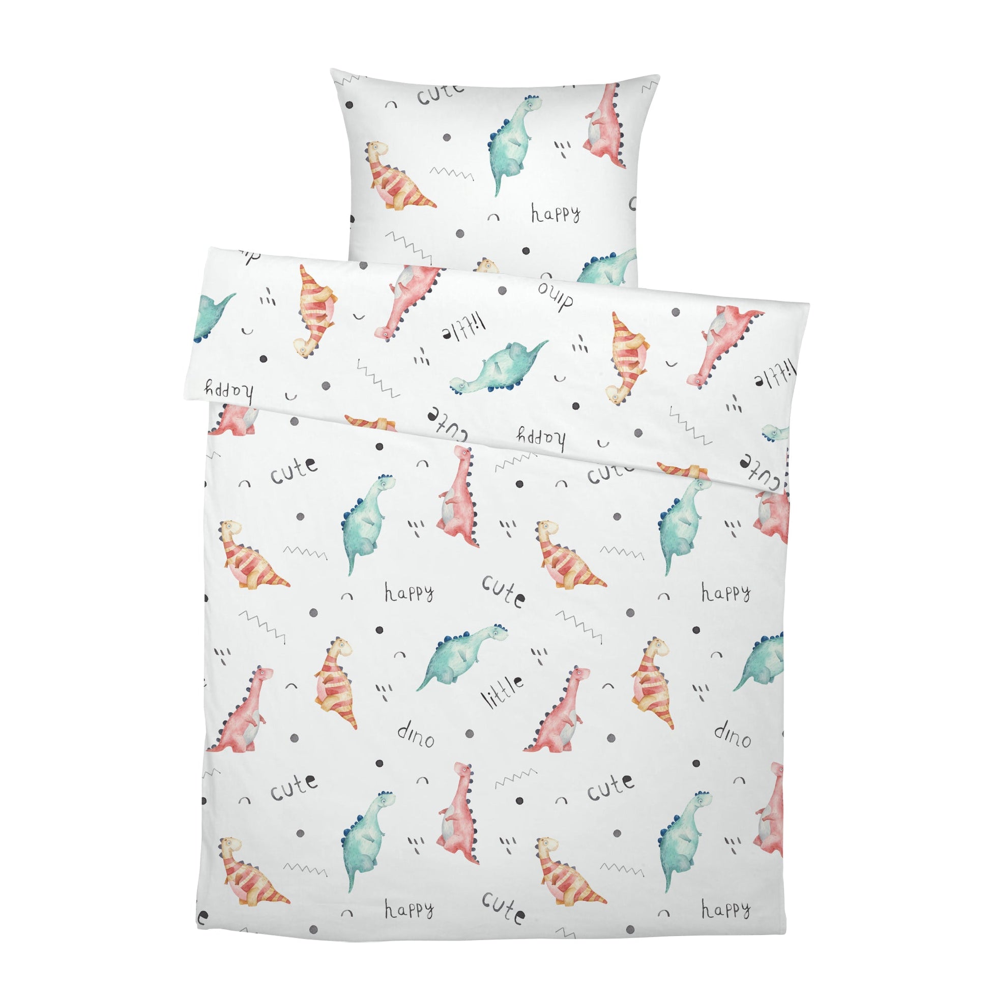Cheerful, hand-drawn dinosaurs and endearing messages like "cute" and "happy" bring fun and comfort to the children's room. A design to fall in love with – perfect for little dinosaur fans!