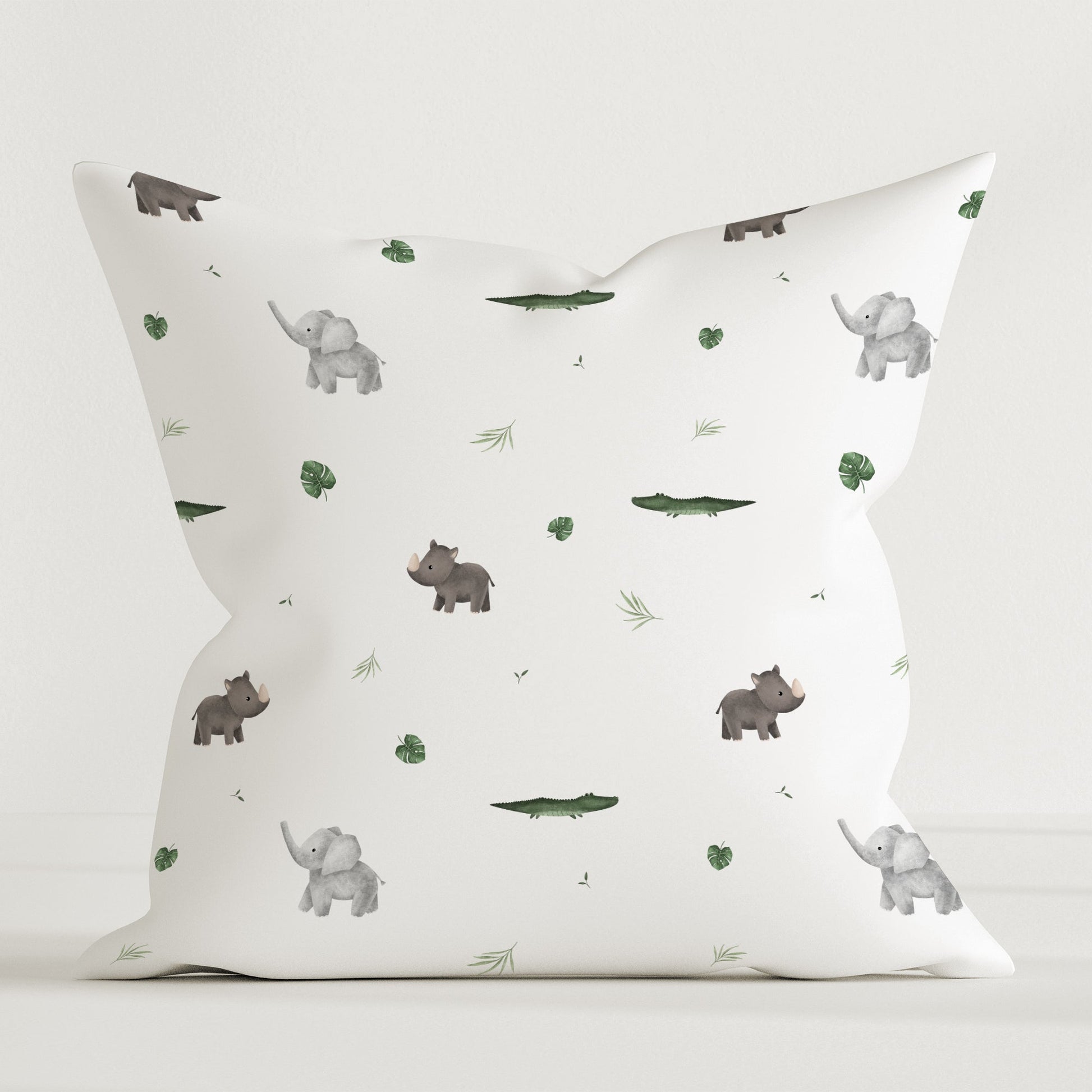 Our "Little Safari" cushion brings elephants, rhinos, and tropical greenery right into the homes of little explorers. The charming watercolor illustrations invite you to dream – wild, gentle, and absolutely enchanting.