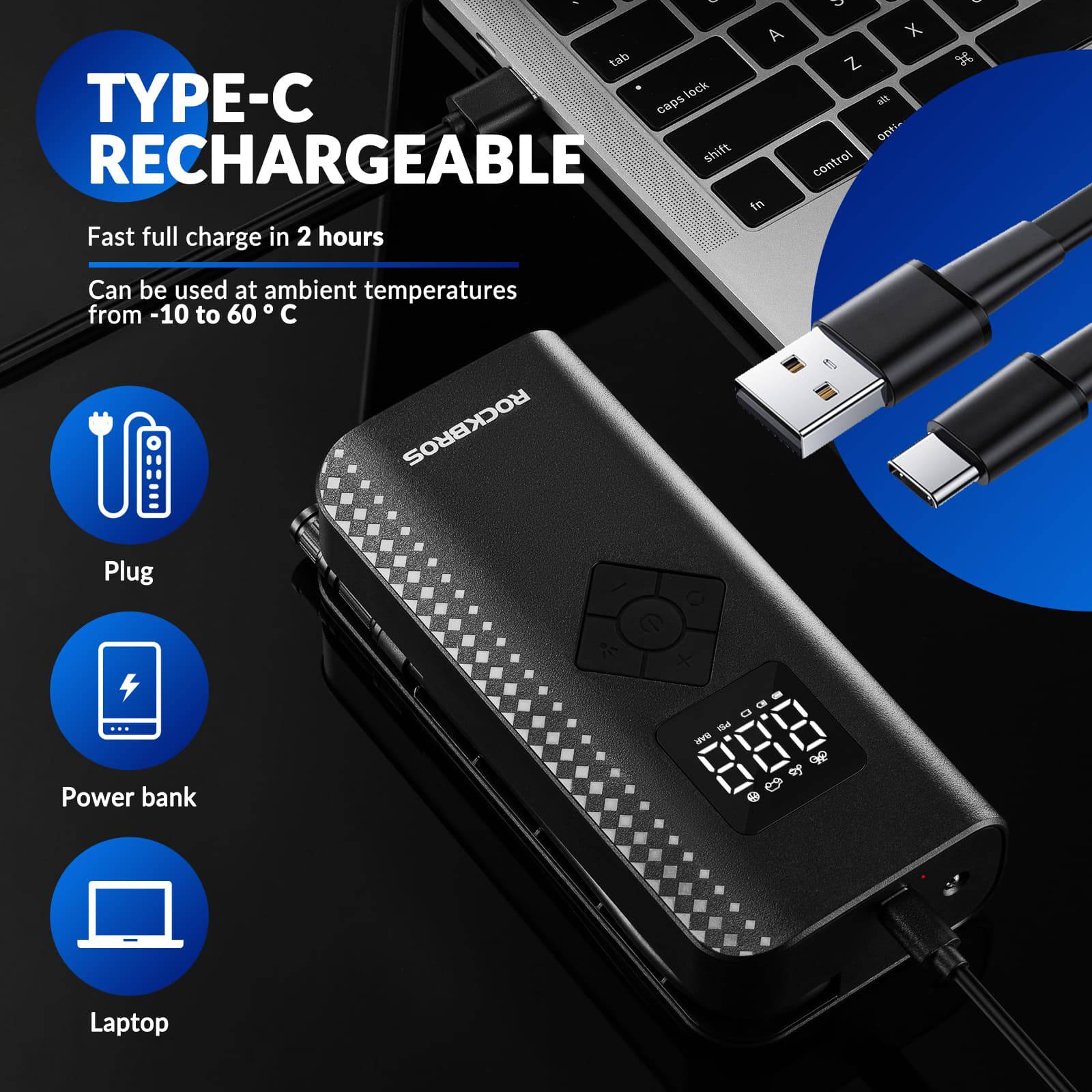 - High Pressure & Safe: The ROCKBROS portable electronic air pump delivers a maximum pressure of 150 PSI/10.3 bar. With this pump, you can fully inflate a car tire in under 12 minutes and a bicycle tire in just 3 minutes! Simply select the desired mode and preset the tire pressure. The pump will automatically stop when inflation is complete. (See product images for details)