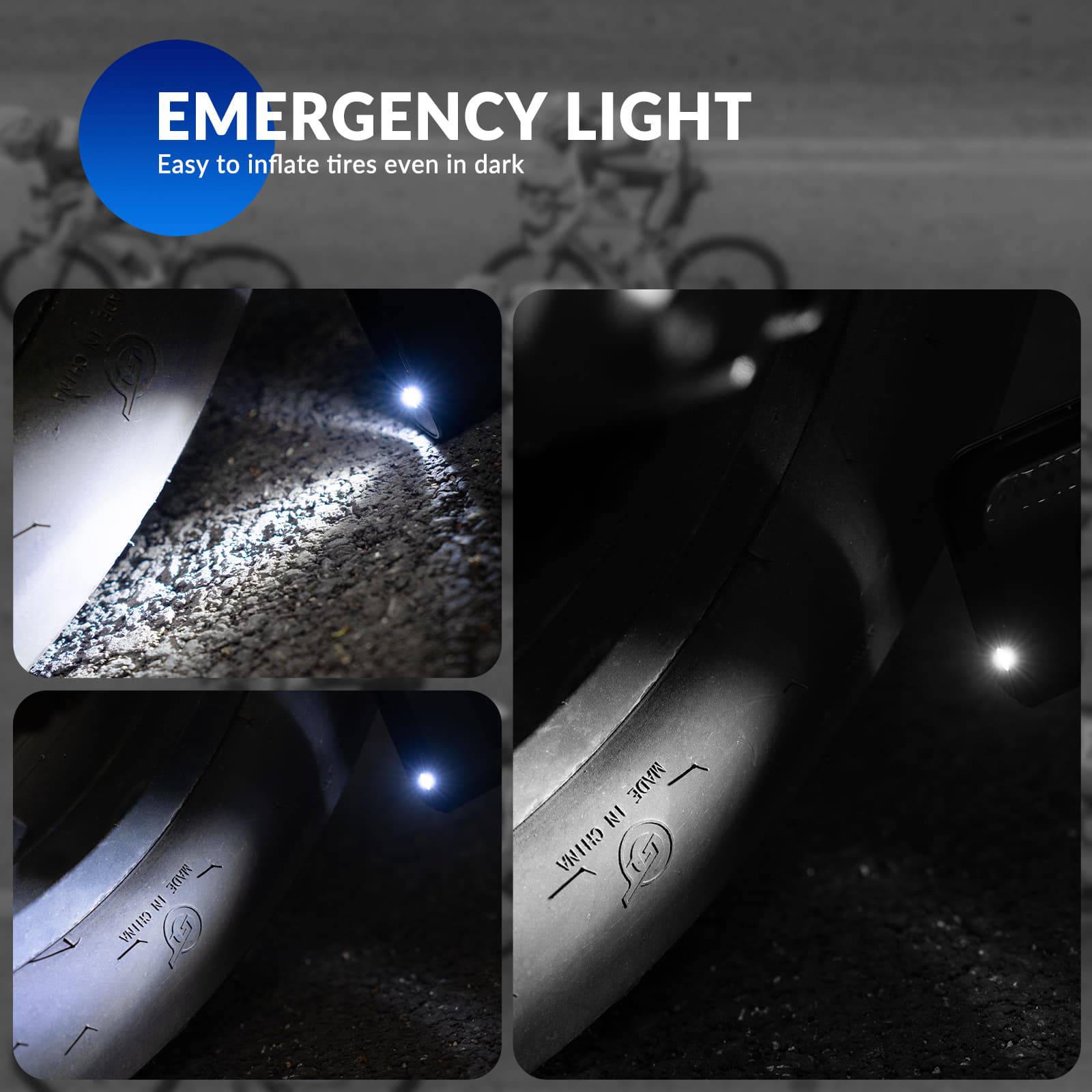 - Digital & Powerful: Our bicycle pump is equipped with a large 2000mAh battery that fully charges in just 2 hours. The LED digital display shows inflation pressure, remaining charge, and various operating modes in real time, and USB-C makes charging faster and more versatile.
