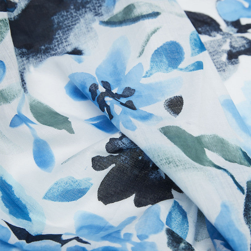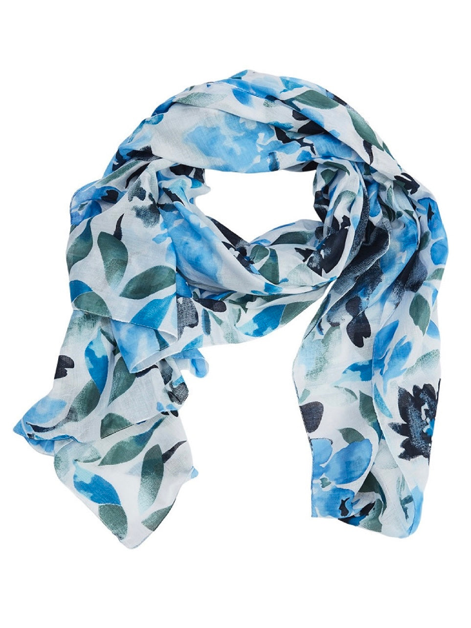 Edler Modeschal aus reiner Baumwolle mit einem dezenten Floralmuster. Er lässt sich ideal zu Kleidern und Shirts kombinieren.