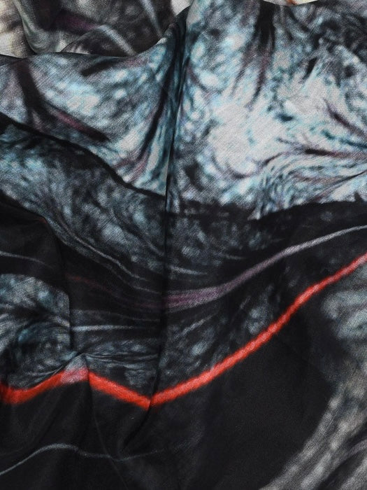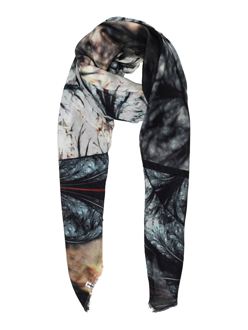 Hochwertiger Modeschal aus einer edlen Baumwolle/Seide Mischung mit einem Fantasiemuster in abgestimmten Farbnuancen. Die offenen Kanten sind Teil des Designs. Perfekt zu kombinieren.