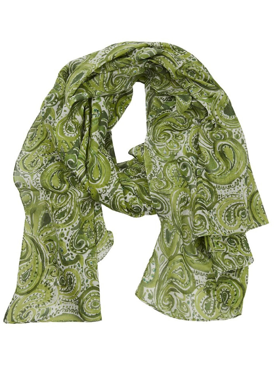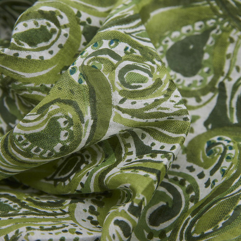 Edler Modeschal aus reiner Baumwolle mit einem dezenten Paisleymuster. Er lässt sich ideal zu Kleidern und Shirts kombinieren.