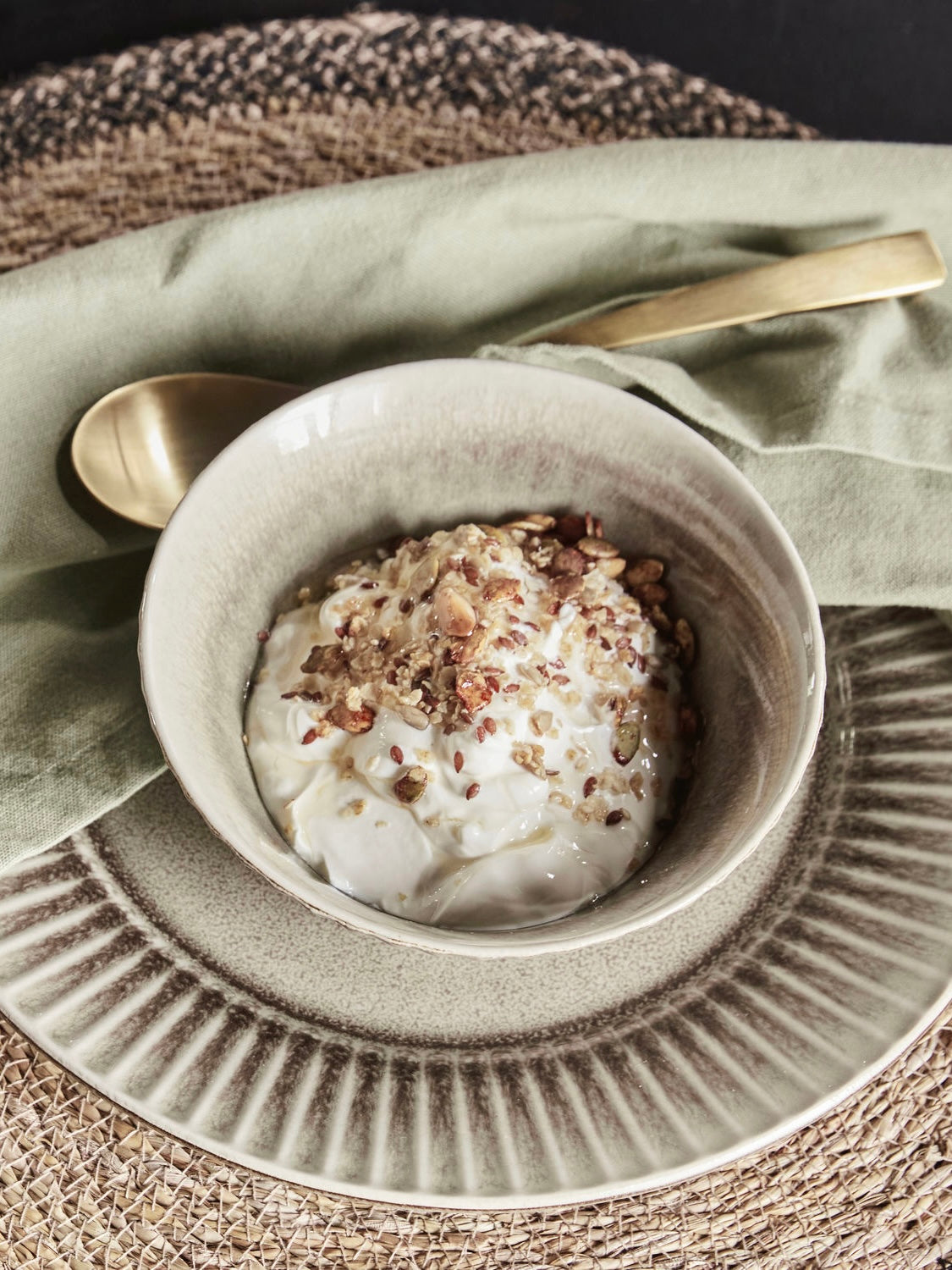 Nutze diese Schale von House Doctor für ein leckeres Müsli, Desserts oder Snacks. Die Geschirrserie heißt Pleat und verleiht deinem Tisch die genau richtige Menge Stil und Eleganz. Was aussieht wie ein einfaches, alltägliches Design entpuppt sich beim näheren Hinsehen als besonderes Highlight in deiner Geschirrsammlung. Das geriffelte Design mit einer matten Außenseite und glänzenden Innenseite spielt gekonnt mit Farbvariationen und lässt sich ideal mit anderen Geschirrserien kombinieren.