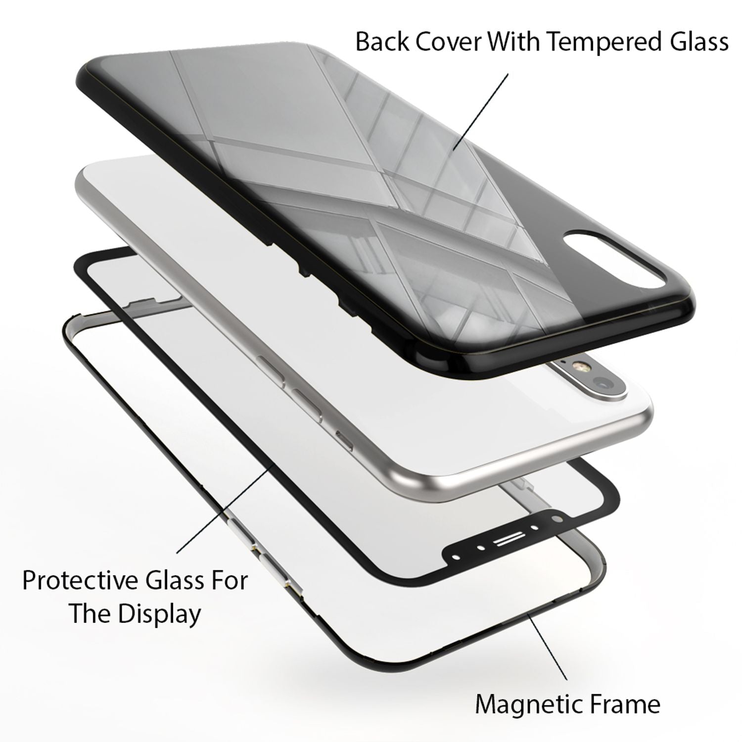 NALIA Magnetic 360° Glass Case Compatible with iPhone XS Max, Ultra-Slim Hard Case, Thin Tempered Glass Back Cover with Frame & Screen Protection, Full-Body Protective Bumper Phone Case