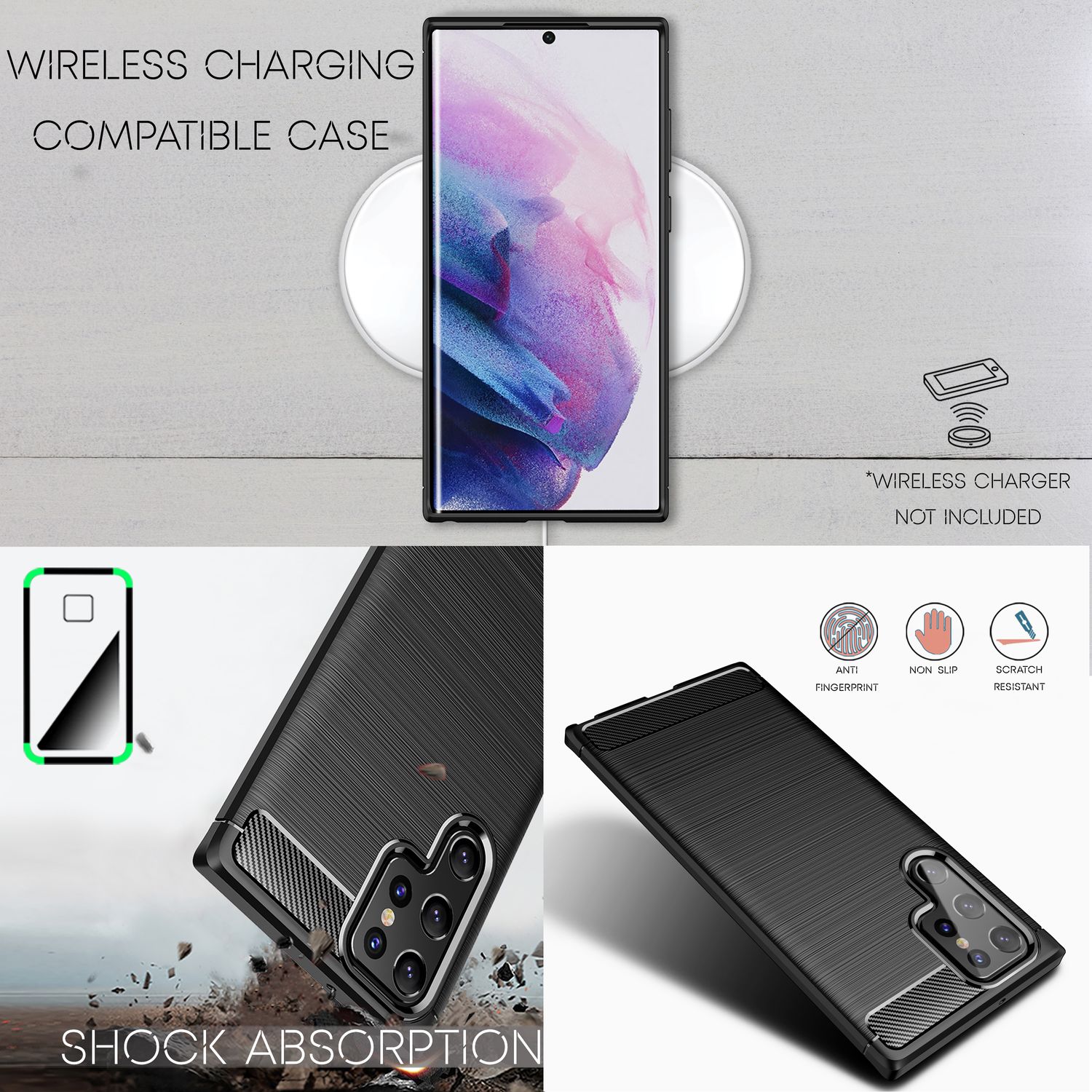 NALIA Carbon Look Case for Samsung Galaxy S22 Ultra, Matte Black Silicone Case, Anti-Fingerprint, Carbon Fiber Look, Phone Case, Protective Case