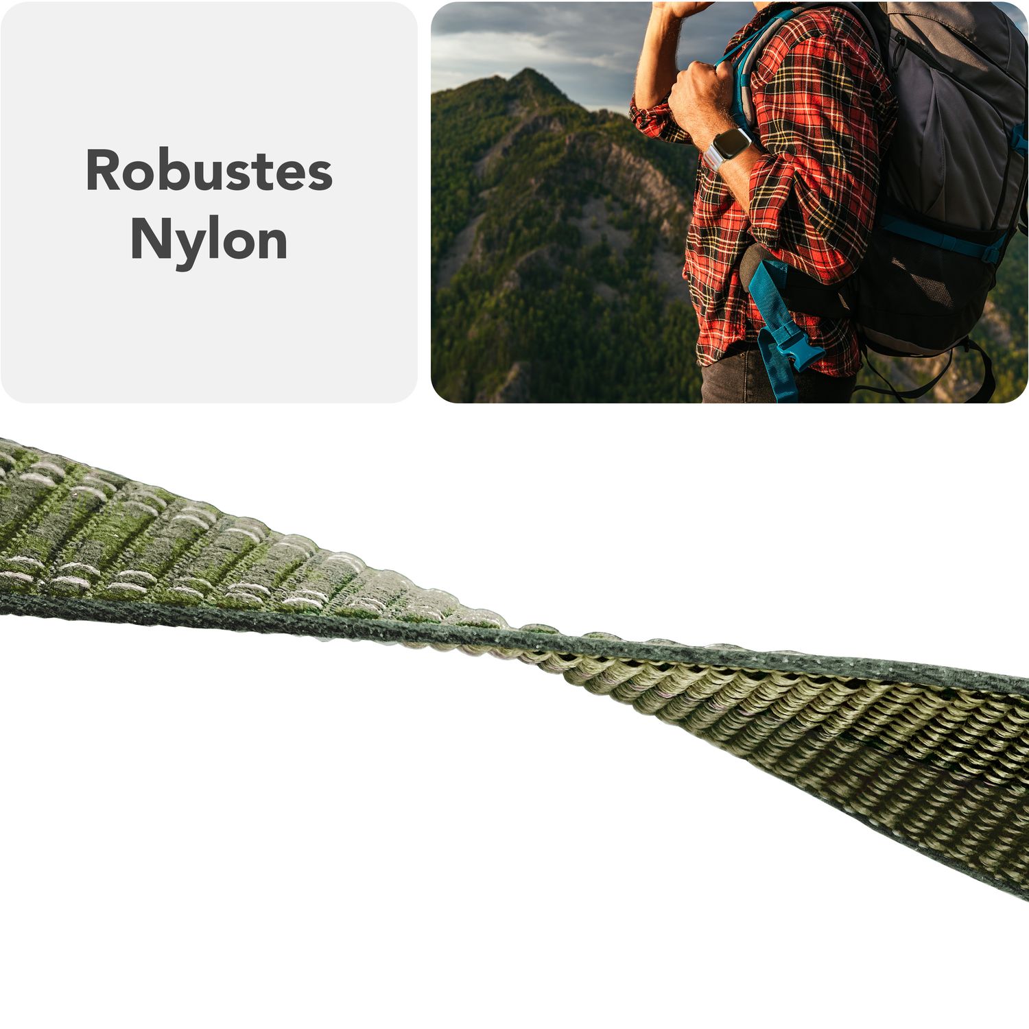 The Nalia Evolv nylon band for Apple Watch combines elegant design with optimal wearing comfort. Made from high-quality woven fabric with a 3D texture , it offers a stylish appearance and first-class durability.