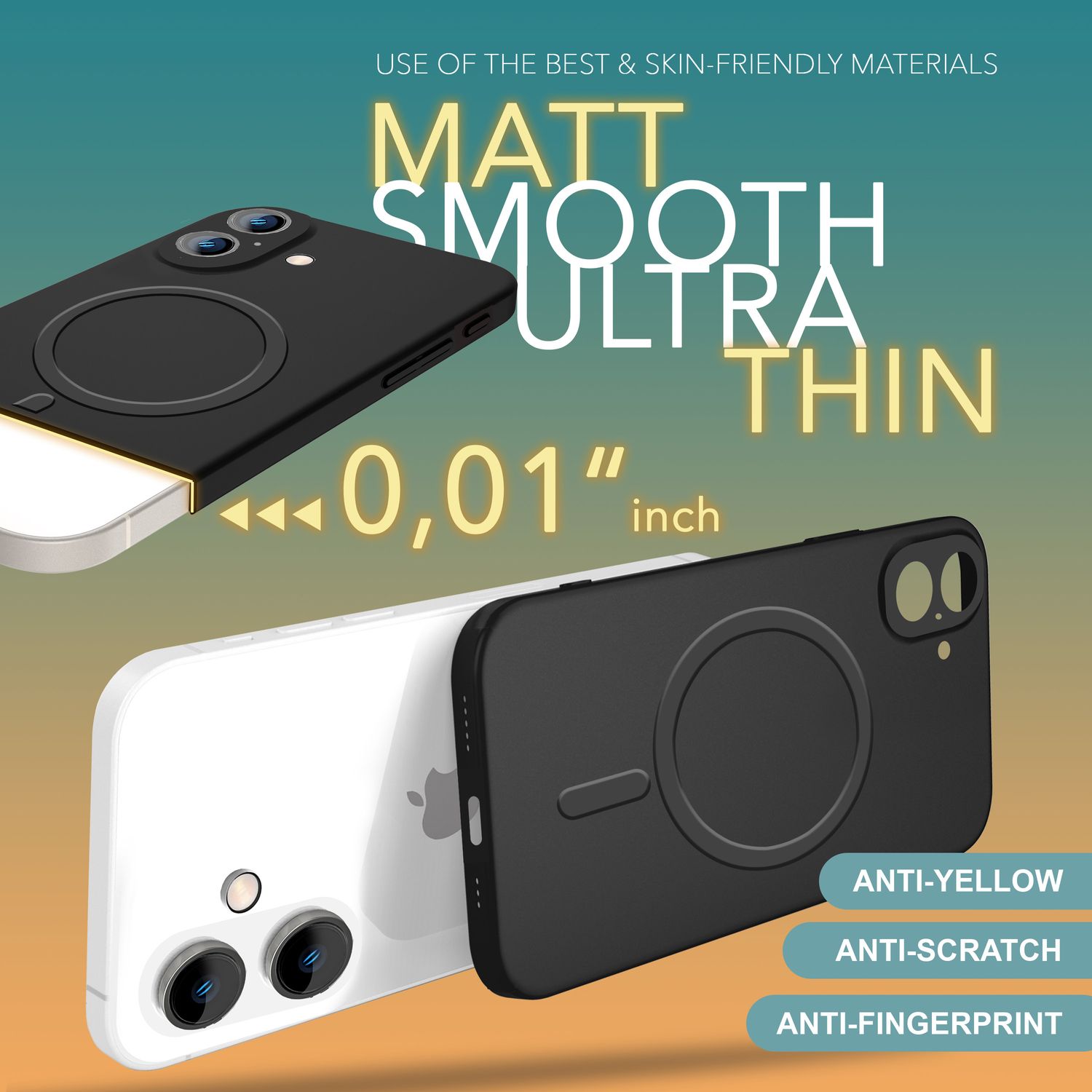 The Thinix MagPower Case offers a minimalist design without compromise. At only 0.3mm thick, it maintains the slim profile of your smartphone, while the magnetic ring ensures full MagSafe compatibility – for wireless charging and accessories such as MagSafe chargers or car mounts.