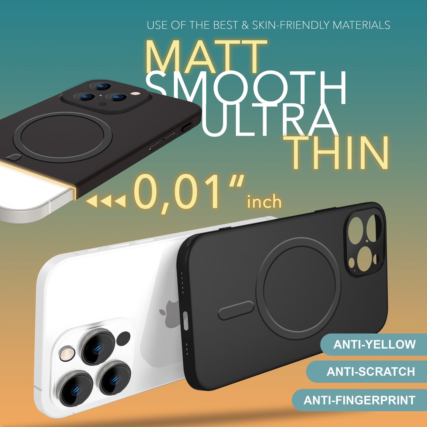 The Thinix MagPower Case offers a minimalist design without compromise. At only 0.3mm thick, it maintains the slim profile of your smartphone, while the magnetic ring ensures full MagSafe compatibility – for wireless charging and accessories such as MagSafe chargers or car mounts.