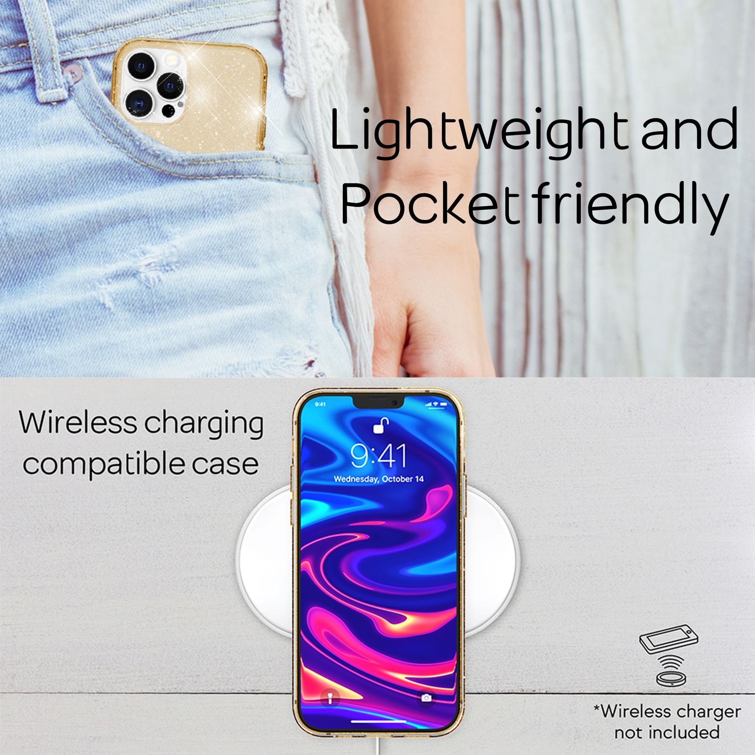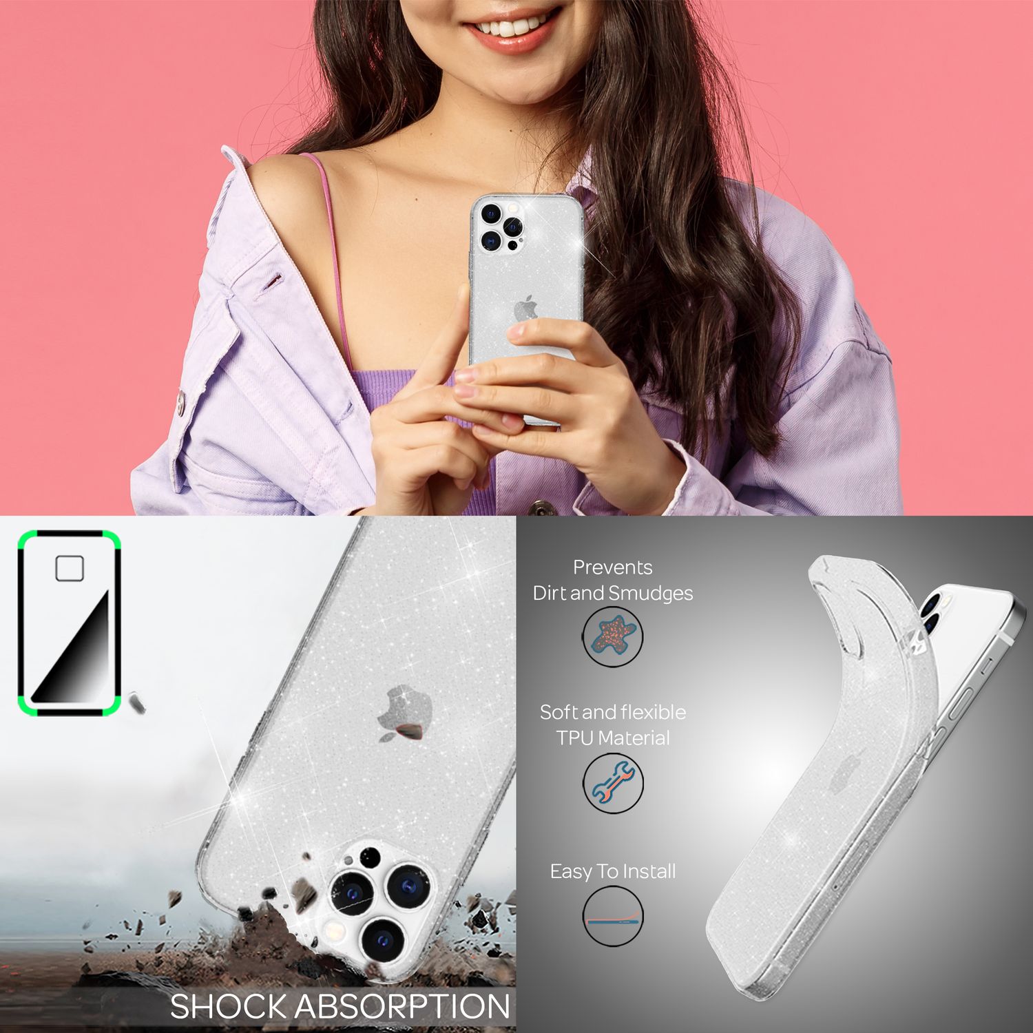 NALIA Glitter Case for iPhone 13 Pro Max, Transparent Glitter Cover Phone Case