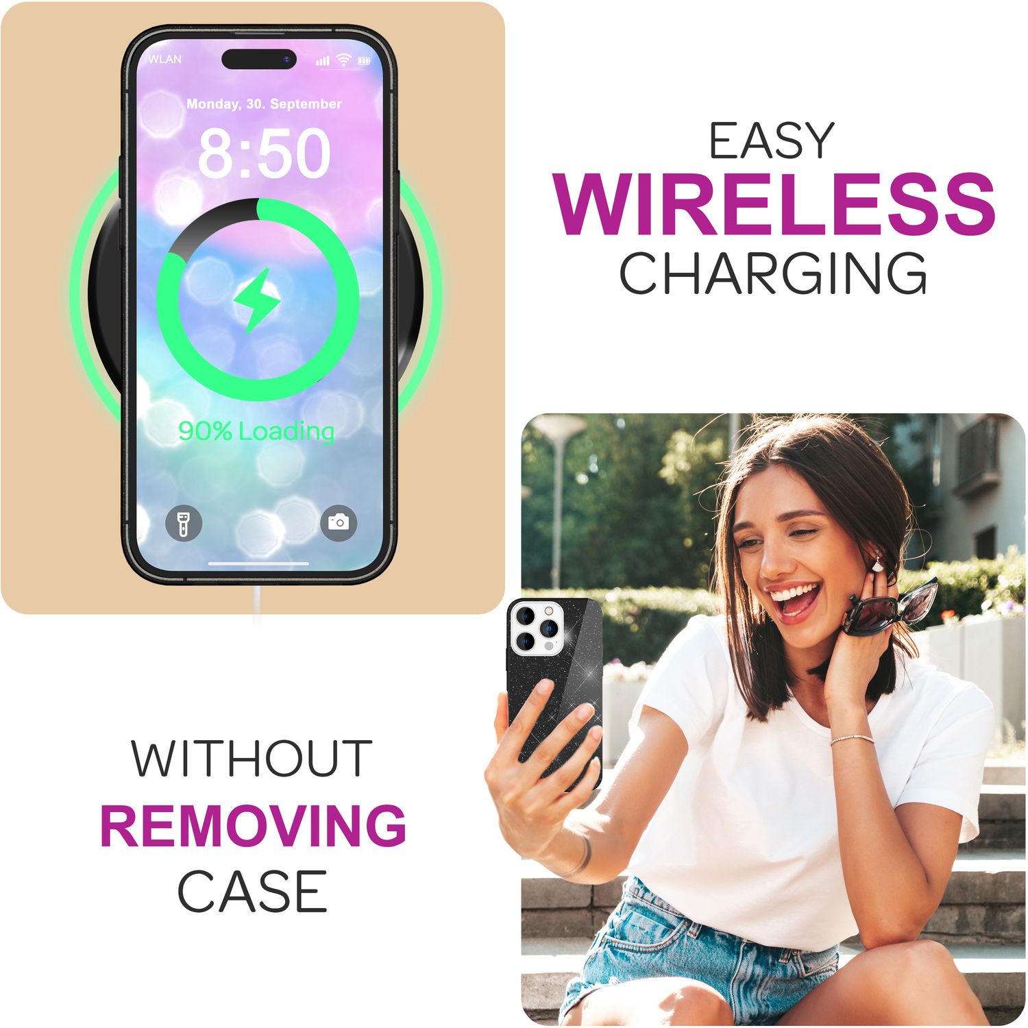 Of course, you can charge your smartphone wirelessly without removing the case. The ShinePop case combines glamour, protection, and functionality at the highest level – a must-have for anyone who loves to shine!